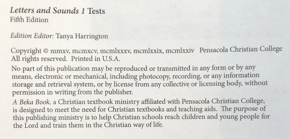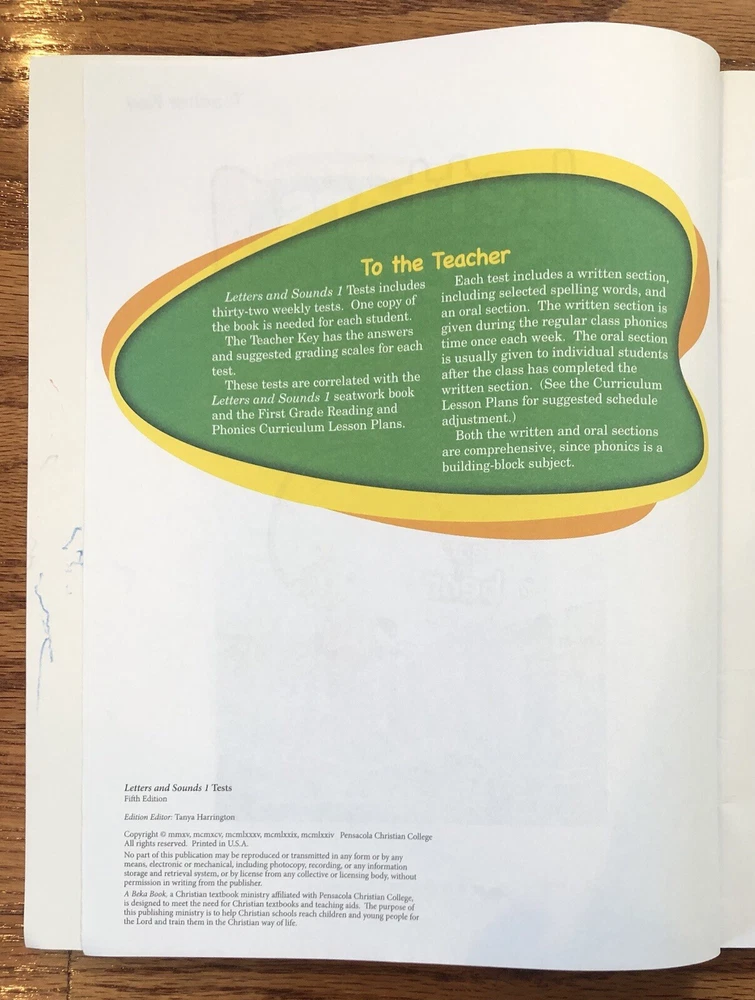 -Abeka Letters And Sounds 1 Fifth Edition Lot - Teacher Key and Test Key -These are used books in good condition: -The pages of the Test Key book contain some pencil markings, but most pages appear clean and unmarked -The pages of the Teacher Key book appear clean and unmarked -The covers of both books show some signs of wear -See pictures for details -If you decide to purchase these books, feel free to leave feedback or a review! We are a small business and any feedback helps -Be sure to check out our other listings for more used homeschool books!