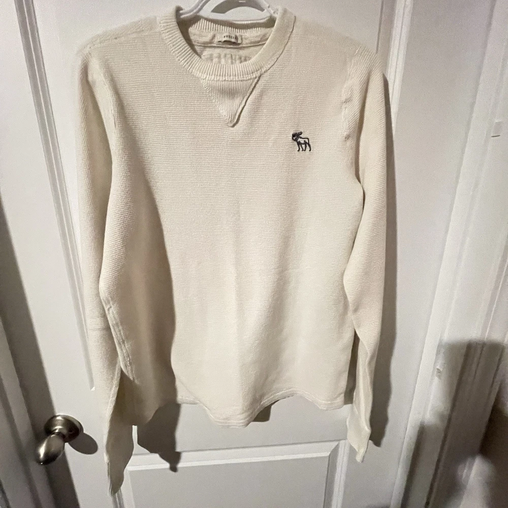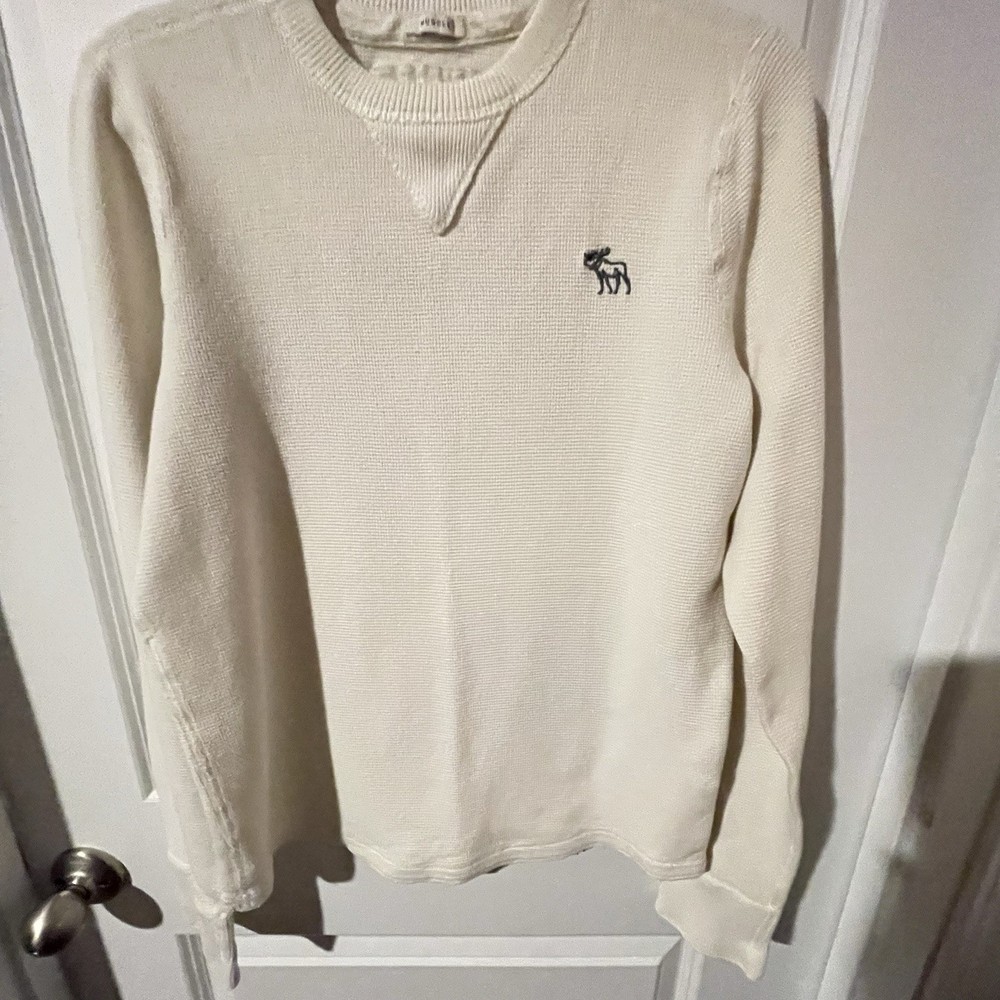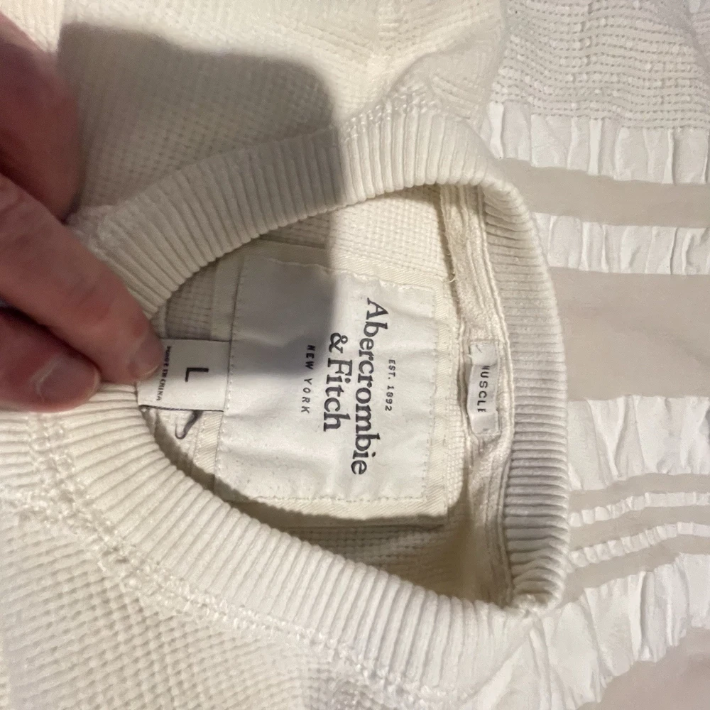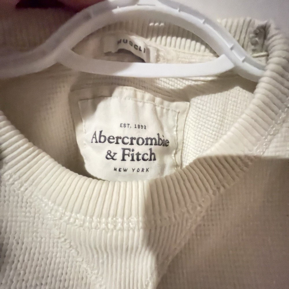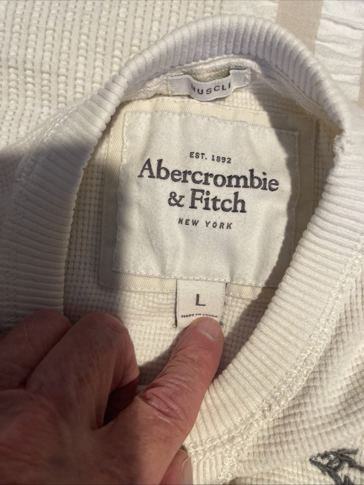 The product is a large white t-shirt with the brand logo "Emerald" and the slogan "New York Large Muscle" from Abercrombie and Fitch. It is designed for men and made of high-quality materials. The shirt is ideal for those looking for a stylish and comfortable option for everyday wear.
