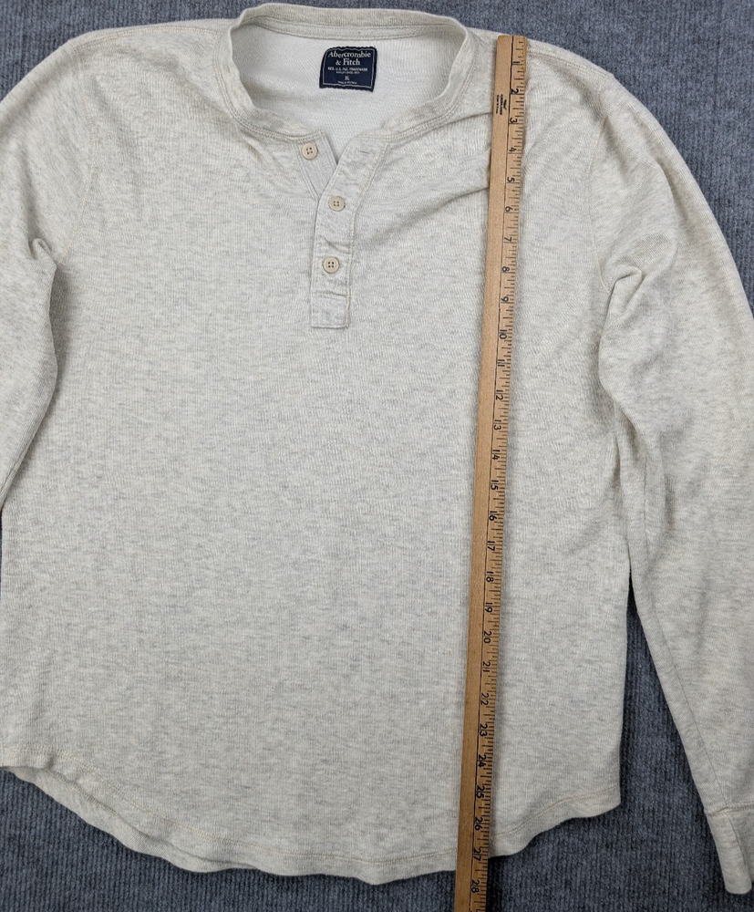Brand: Abercrombie & Fitch Department: Men Type: Henley Shirt Size: XL Color: Beige / Cream Style: Henley Sleeve Length: Long Sleeve Neckline: Henley Material: Cotton Blend (93% Cotton, 7% Nylon) Pattern: Solid Features: Soft, Lightweight, Stretch Occasion: Casual, Everyday Condition: Pre-Owned