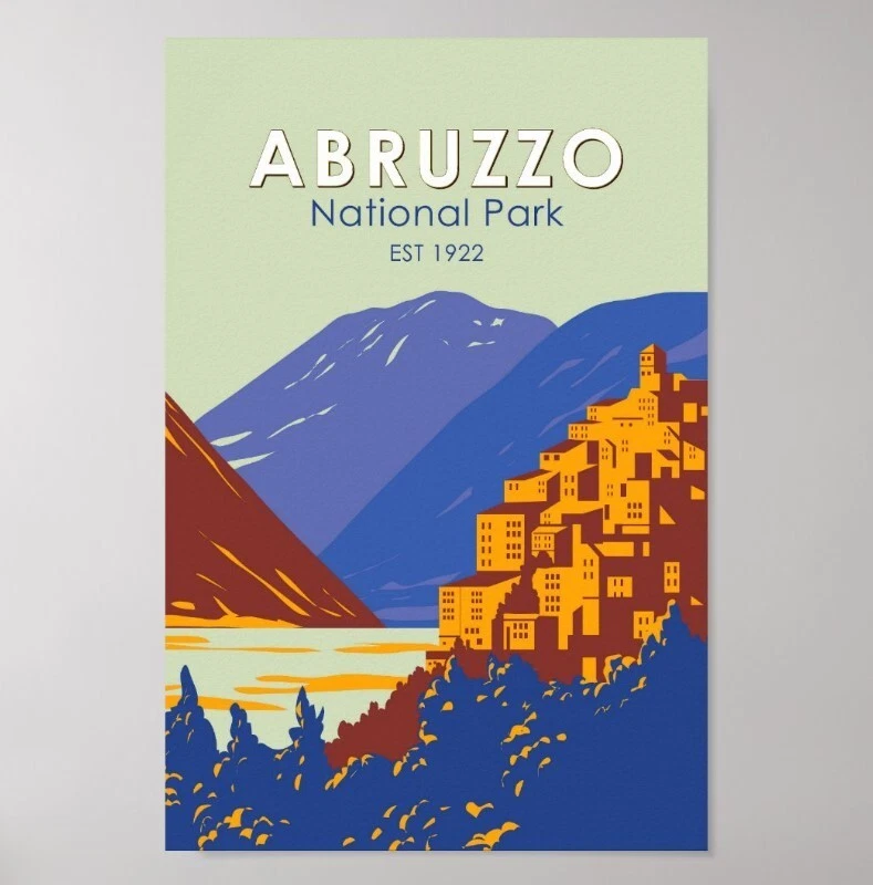 Abruzzo National Park Italy Travel Art Vintage Poster