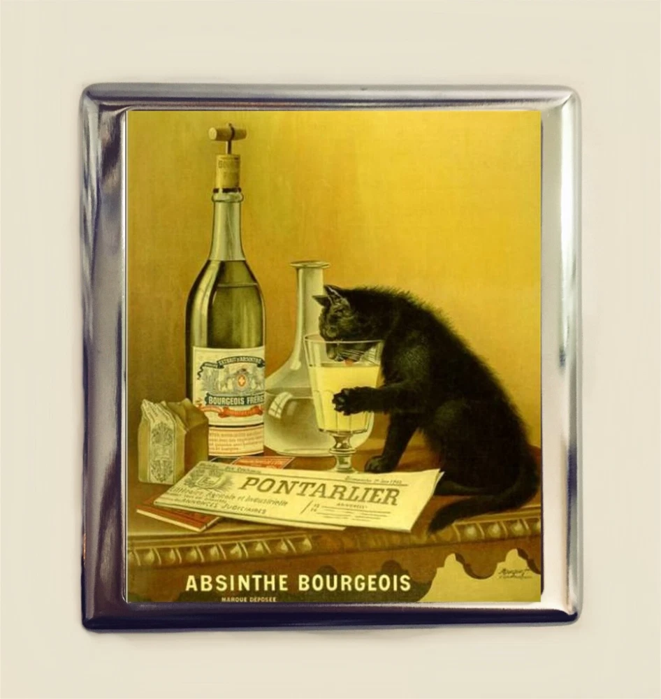 Absinthe Black Cat Cigarette Case Business Card ID Holder Wallet French