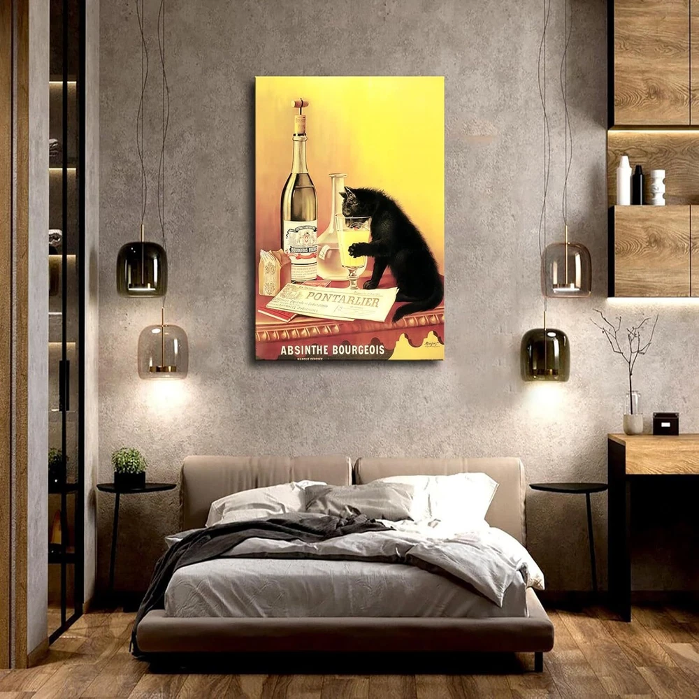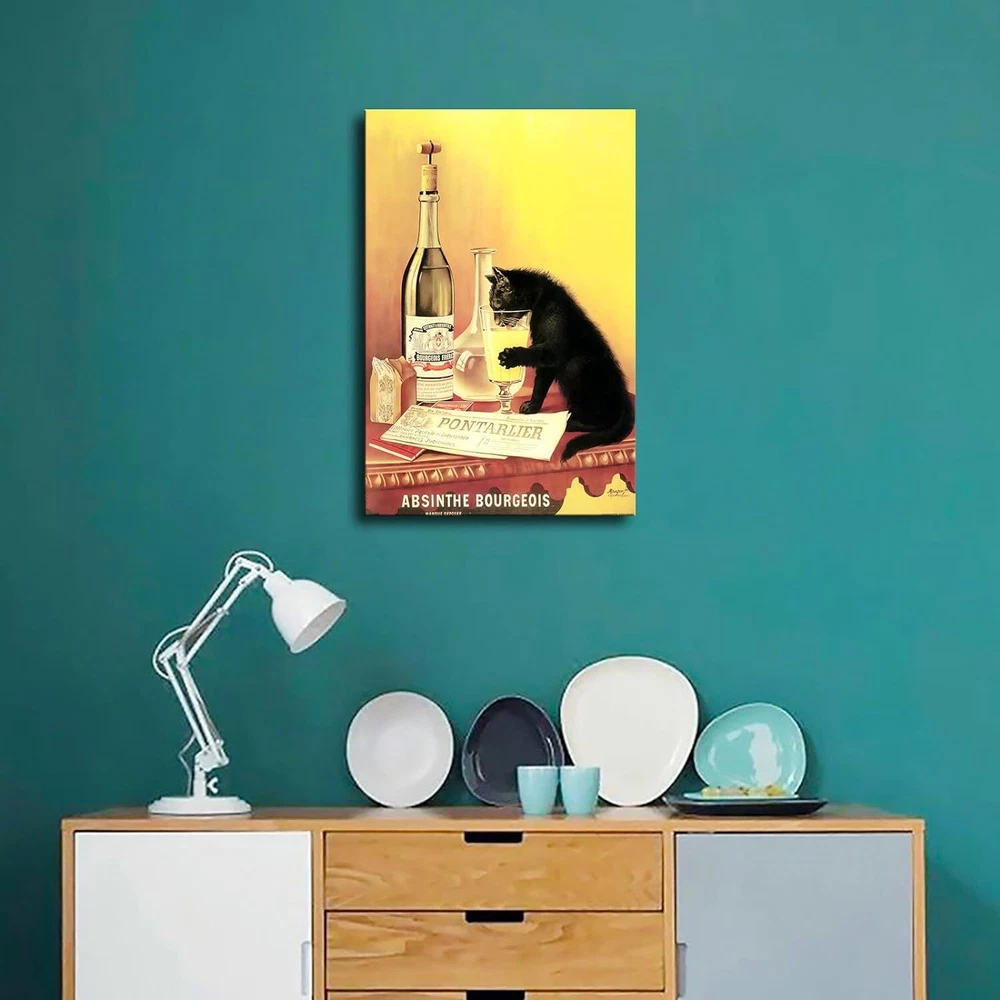 Absinthe Bourgeois Print Poster Cat Poster Vintage Painting Canvas Wall Art