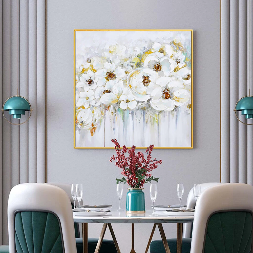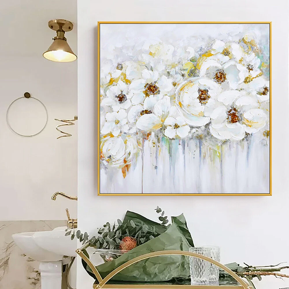 Abstract 3D Knife Oil Painting White Flower Decoration Wedding Home Hand Painted