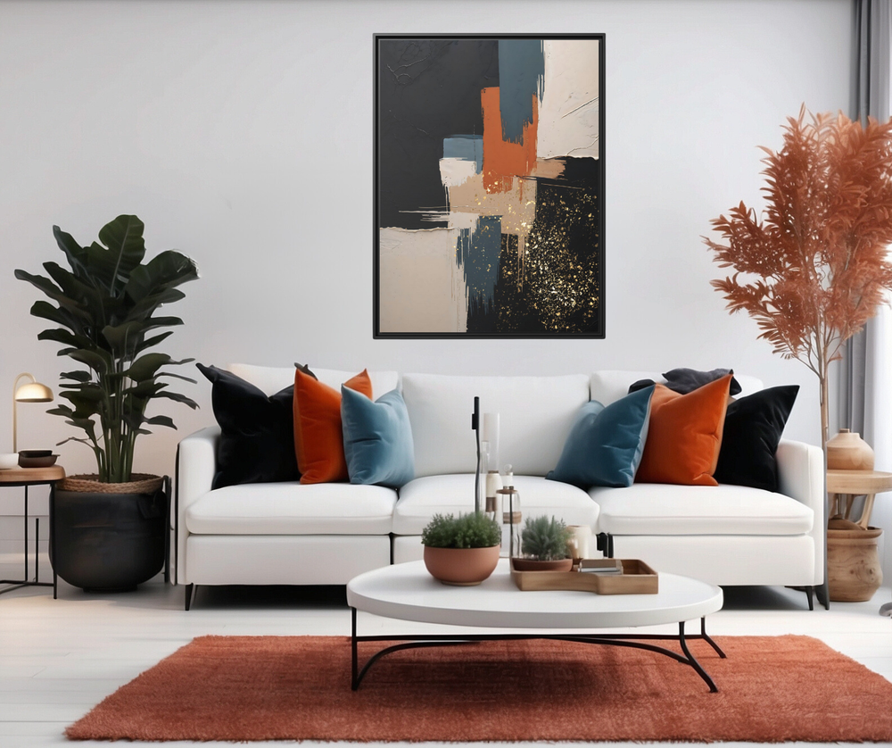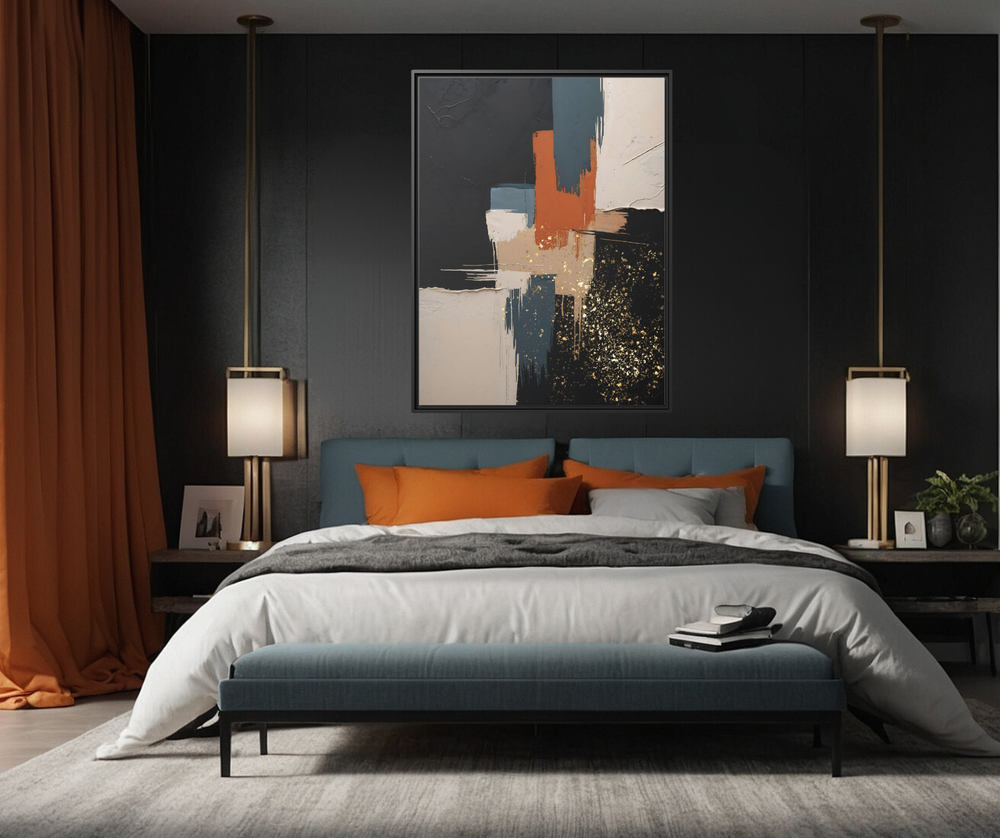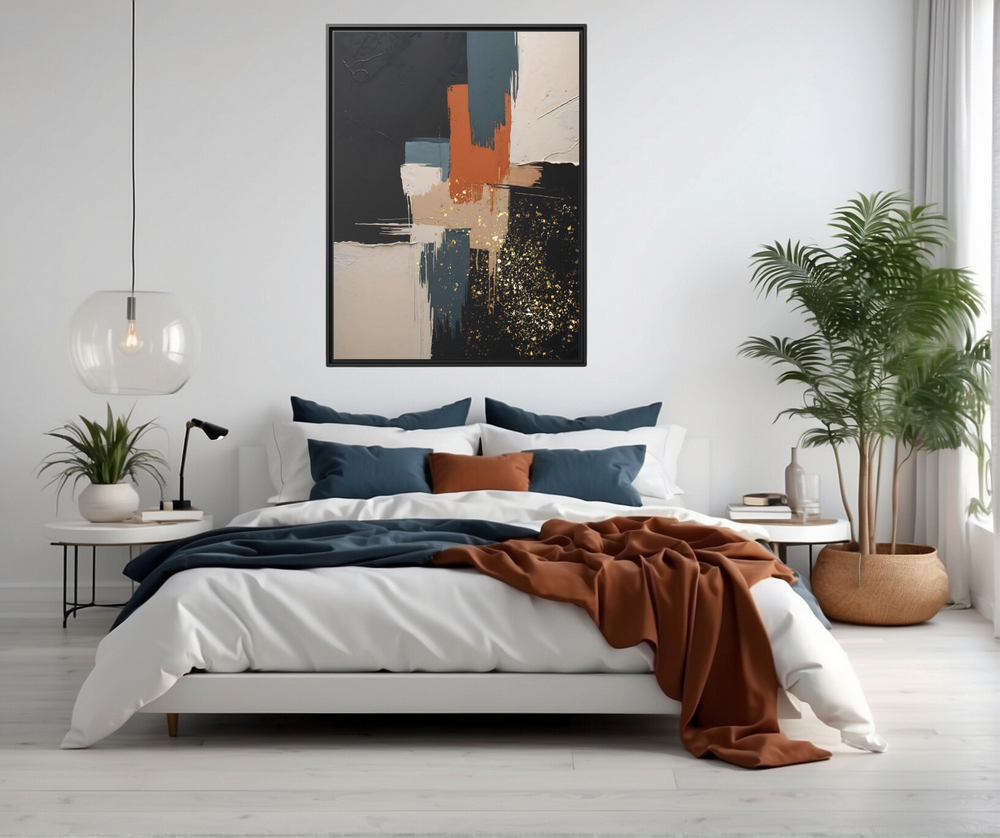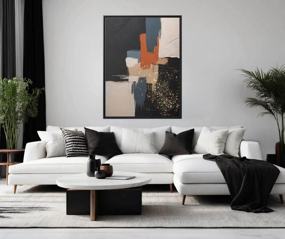 Radiant Illusions – Contemporary Glitter-Embellished Abstract Canvas Art Product Description: Step into a world of shimmering elegance with " Radiant Illusions " , a breathtaking contemporary painting that blends bold earth-tone hues with divine golden glitter, as if touched by the gods themselves. This striking composition is designed to captivate, exuding warmth, depth, and an ethereal glow that transforms any space into a luxurious sanctuary of art. Printed in stunning HDR on museum-quality cotton-polyester composite gallery-wrapped canvas , this piece is meticulously crafted to showcase its rich textures and radiant shimmer. The proprietary matte finish coating enhances durability while ensuring vibrant, long-lasting colors. Utilizing UL-certified Greenguard Gold latex inks , the artwork is produced with non-toxic, non-hazardous, and non-flammable materials for a safe and eco-conscious experience. Framed in a 1.25" solid pine wood floating frame available in a sophisticated espresso finish , this piece achieves a sleek, modern aesthetic while maintaining a timeless allure. The sustainably sourced FSC-certified wood ensures an environmentally friendly choice without compromising on quality. Arriving ready to hang with pre-installed sawtooth hardware , installation is effortless, allowing you to instantly elevate your interior décor. Let Radiant Illusions be the glowing centerpiece of your home or office, reflecting light, movement, and celestial beauty with every angle. Key Features: Bold & Luxe Design: A contemporary masterpiece featuring an earth-tone color palette infused with golden glitter accents for a radiant, celestial effect. Premium Canvas Print: Printed in HDR on museum-quality cotton-polyester composite canvas for exceptional detail and color vibrancy. Special Matte Finish: Proprietary coating ensures long-lasting durability and enhances depth and clarity. Eco-Friendly & Safe: Crafted with UL-certified Greenguard Gold latex inks , which are non-toxic, non-hazardous, and non-flammable . Elegant Floating Frame: Framed in a 1.25” solid pine wood espresso frame , giving the artwork a sleek, contemporary floating effect. Sustainably Sourced Materials: Made with Forest Stewardship Council (FSC)-certified wood , ensuring an environmentally responsible product. Ready to Hang: Comes fully assembled with sawtooth hanging hardware attached for easy wall mounting. Minimal Maintenance: If dust gathers, gently wipe with a clean, damp cloth to maintain its pristine condition. Precision Crafted: Due to the production process, slight size variations (+/- 1/8" or 3.2mm) may occur. Transform your space with the divine radiance of Radiant Illusions —where artistry, luxury, and brilliance converge.