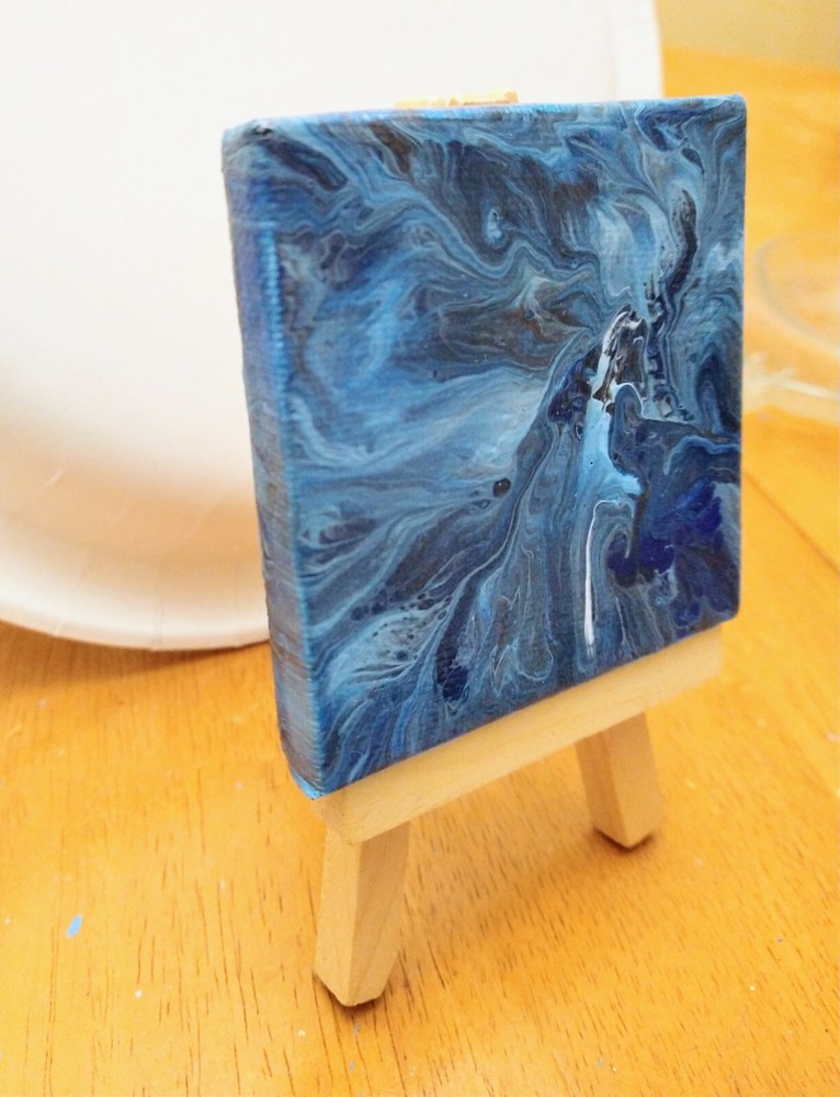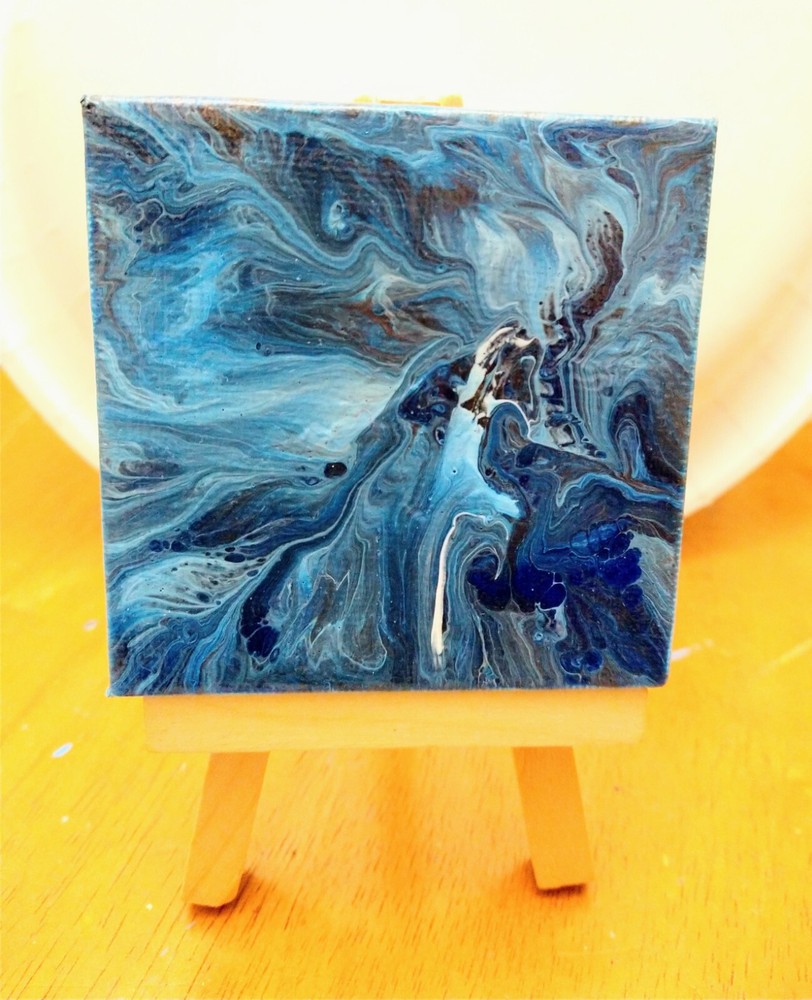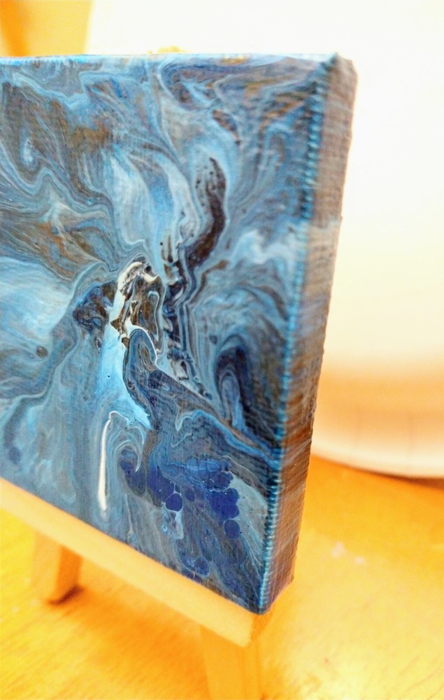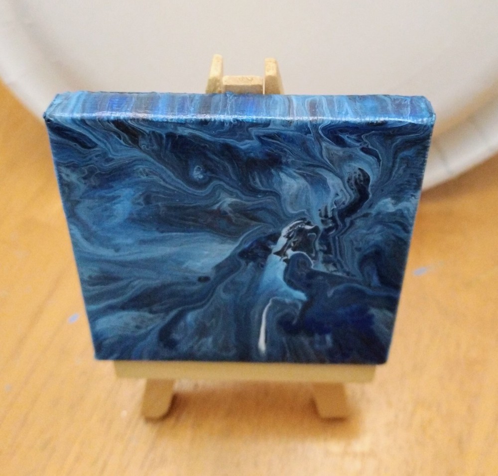 This unique art piece is a handmade, original acrylic painting on a 3"x3" miniature canvas. The abstract design features vibrant colors and intricate details that are sure to catch the eye. The painting comes with an easel and magnet for easy display and is perfect for any art collection. The painting was produced using high-quality acrylic painting techniques and is one of a kind. It was created in Florida, USA, in 2022. This original art piece is unframed and made of acrylic material. It is perfect for those who appreciate abstract art and want to add a unique piece to their collection.