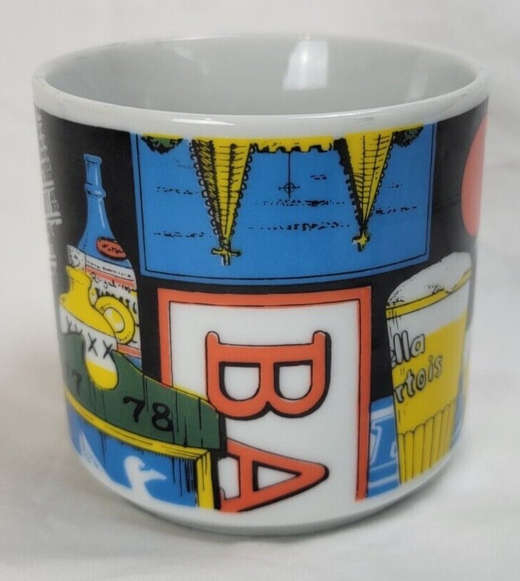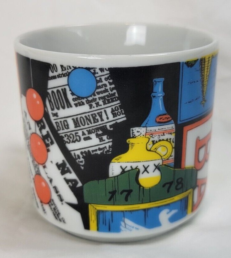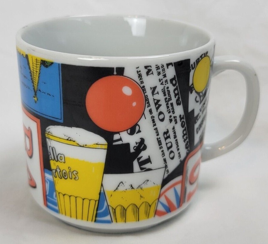 Alcohol Themed Collage Mug, graphic art, unique, barware theme, abstract. R104