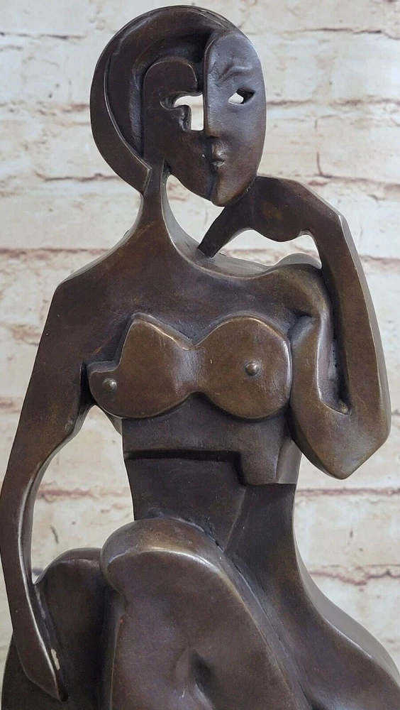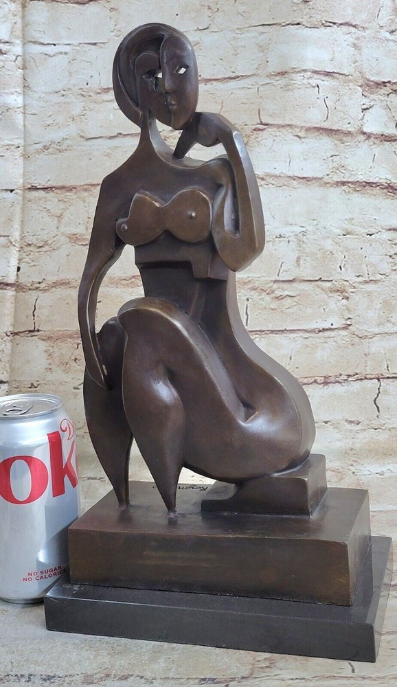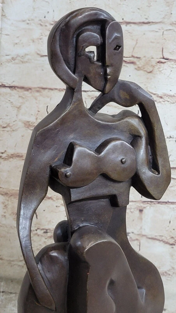 Condition : This sculpture is in perfect condition. Bronze Dimensions with Marble Base: Height 14" X Width 7 1/2" Marble Dimensions:7.5" X 4" Height without base:13" Weight:12 LBS Inventory:23DS4945132 This unique bronze sculpture presents a figurative female figure that breaks away from the conventions of traditional art. Within its abstract composition, the viewer can discern elements of a female form intertwined with bird-like characteristics. Handcrafted entirely from bronze, this sculpture showcases the meticulous craftsmanship of the artist. Employing the time-honored technique of lost-wax casting, the sculpture is created with great precision and attention to detail. To preserve its beauty, a brown patina finish has been carefully applied. The sculpture is elegantly displayed on a black marble base, further enhancing its aesthetic appeal. This remarkable artwork bears the signature of the talented artist, Raymondo. It is a testament to his artistic vision and skill. Whether as a centerpiece in a collection or a standalone piece, this bronze sculpture is sure to captivate viewers and spark conversation. Hand Made Modern Abstract Female Bronze Statue Sculpture Tribute To Picasso Decor DS-494 Video will open in a new window Using the eBay App? Paste link into a browser window: [isdntekvideo]