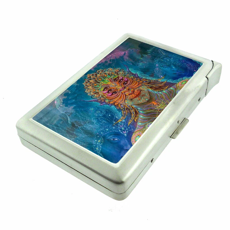 Abstract Art Em18 Cigarette Case with Built in Lighter Metal Wallet