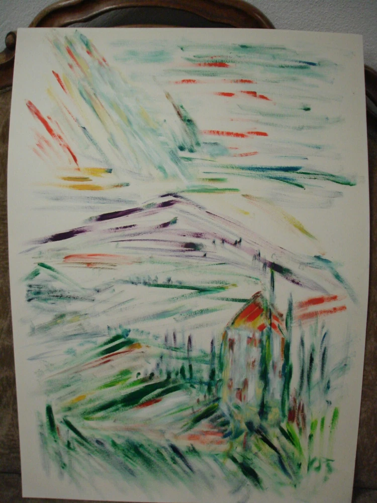 abstrakte Darstellung eines Hauses in einem Wald Öl auf Malpappe - sehr schön passend gerahmt Handgemalt - Spachteltechnik - KEIN Druck Das Bild ist unten rechts signiert mit "Jos" für Hugo Joswig aus Koblenz Urbar es stammt aus der 2. Hälfte des 20. Jahrhunderts Höhe ca. 70 cm Breite ca. 50 cm Sehr guter Zustand mit keinerlei Alters- und Hängespuren - aus dem privaten Bestand des Künstlers.