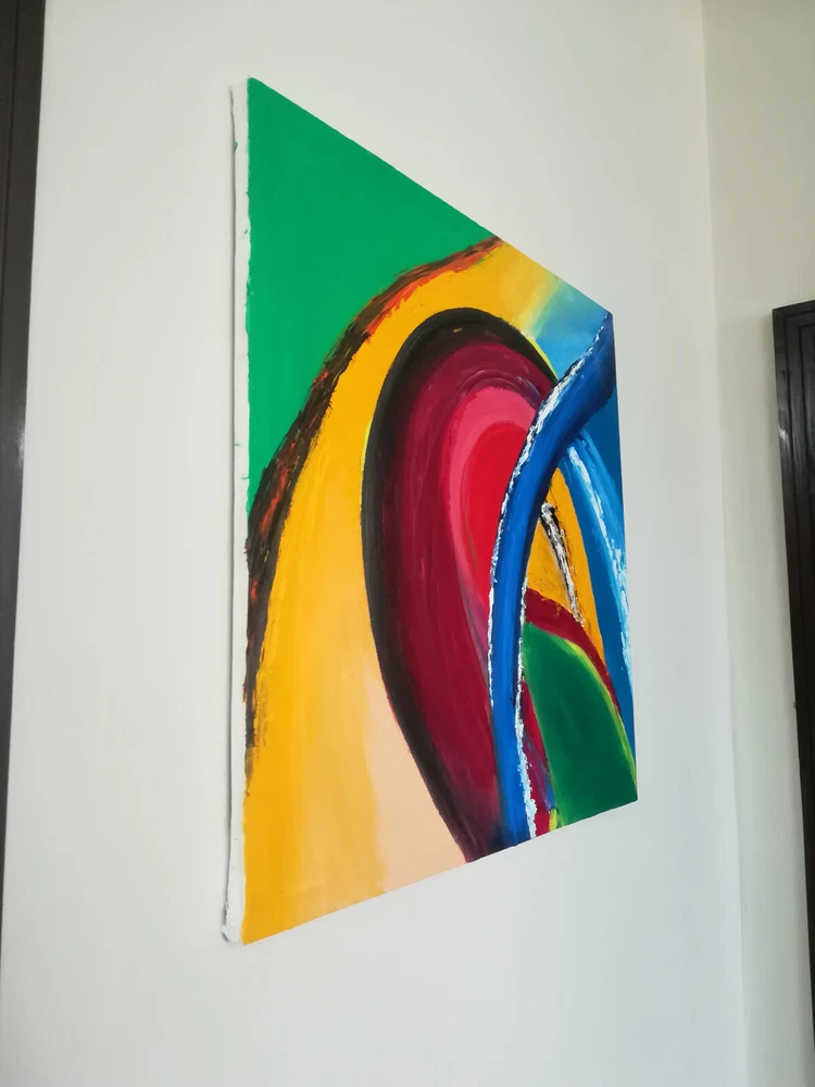 The painting is stretched on a canvas. It is entirely handmade with a textured surface. This exclusive handmade painting with love and artistic skill and is a true work of art. Features: Handmade: Each painting is meticulously crafted by hand using high-quality materials and a unique approach to creating textures. Unique Design: The painting features a distinctive textured surface that adds depth and interest to the artwork. High-Quality: Premium-grade acrylic paints are used to ensure vibrant colors and long-lasting durability. Details: Abstract Art with Acrylic colors on canvas Size 24 x 24 inch Material: Canvas Unframed Theme: Abstract Wall Decor Fit for Living room, Drawing Room Expect to receive your painting within 10-15 days after order confirmation. Please note that as the painting is handmade, there may be slight variations in texture and shades compared to the displayed photos. This adds uniqueness and character to your painting. Make your interior truly remarkable with this beautiful handmade textured painting.