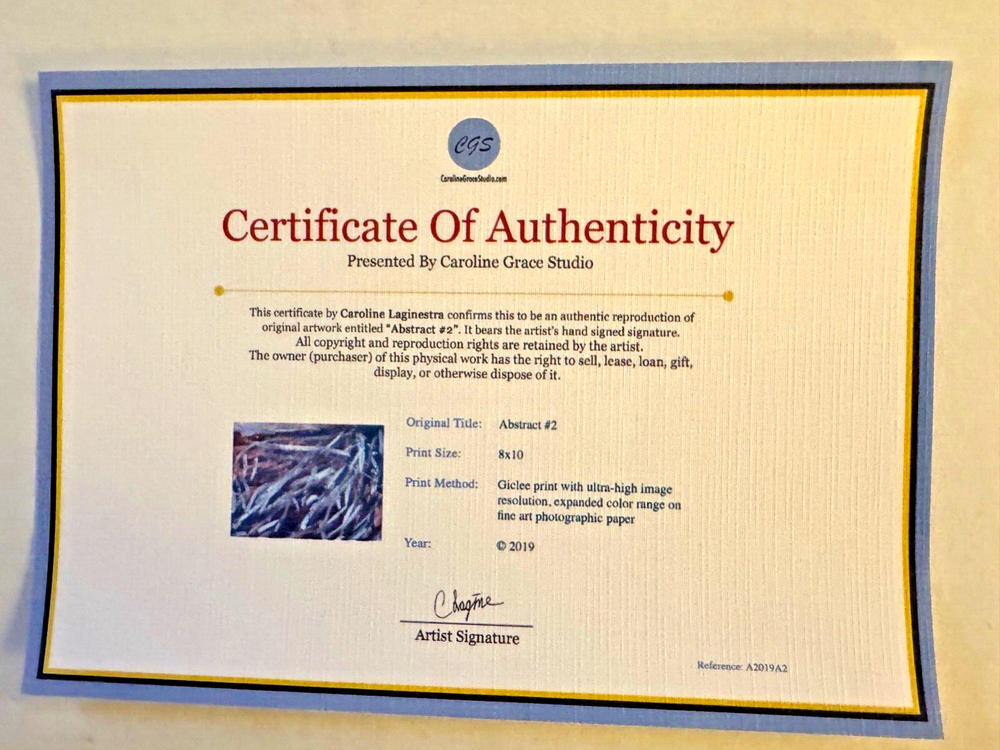 Abstract Original Art Print Reproduction Titled "Abstract #2" From Caroline Grace Studio This listing is for an authorized reproduction of an original work of art by artist Caroline Grace entitled "Abstract #2" hand signed by the artist. Giclee Print with ultra high resolution image on Fine Art Photographic Paper - 8x10 matted to 11x14 inches Certificate of Authenticity issued by the artist is included. Nicely packaged in protective coating. No frame or stand included with this listing. ID: A2019A2 © We provide careful packing, fast shipping and want you have the best possible shopping experience. Please feel free to contact us with any questions