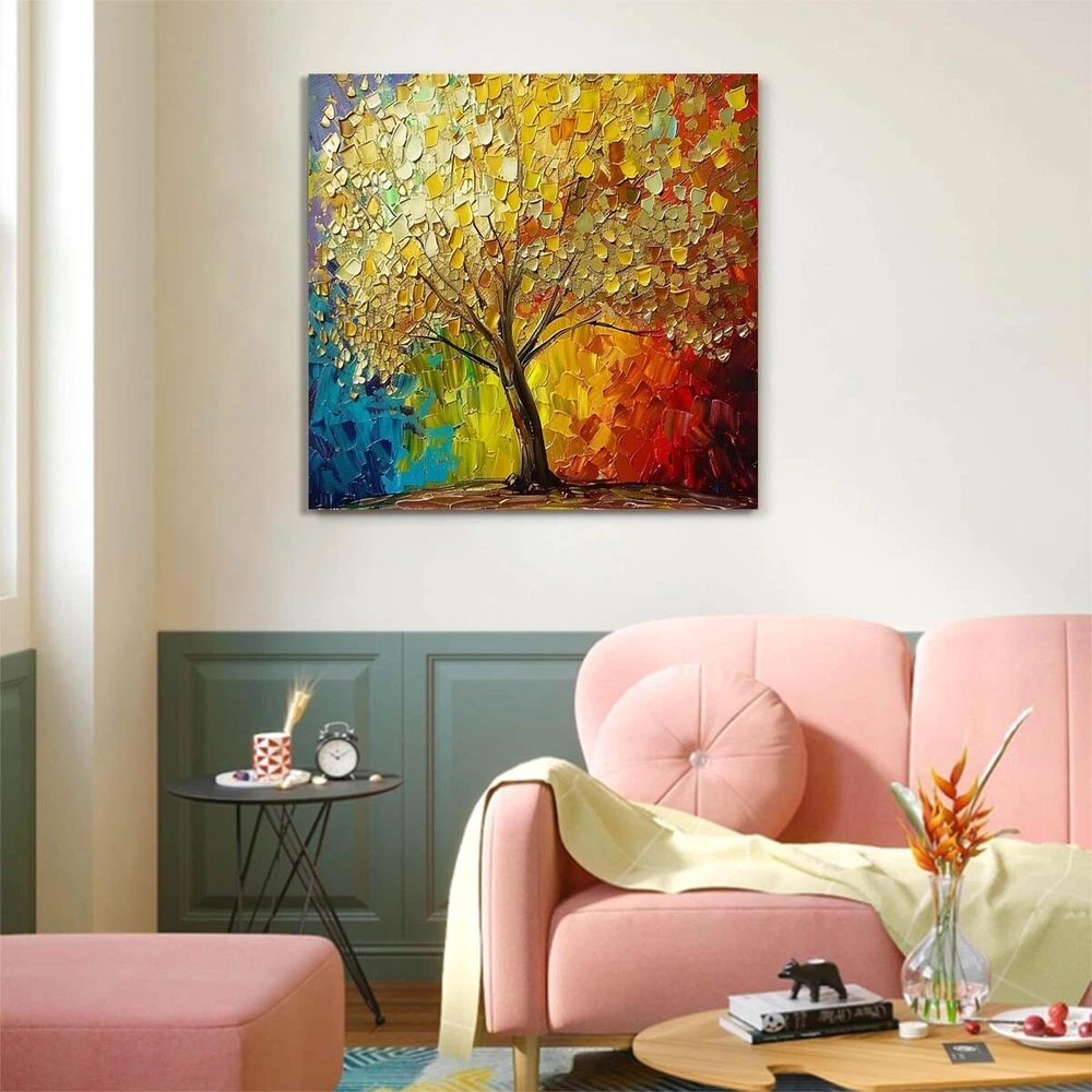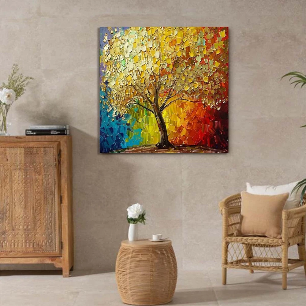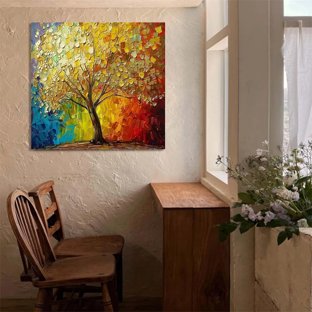 Abstract Art Thick Knife Oil Painting Handpainted Canvas 3D Lucky Tree #021