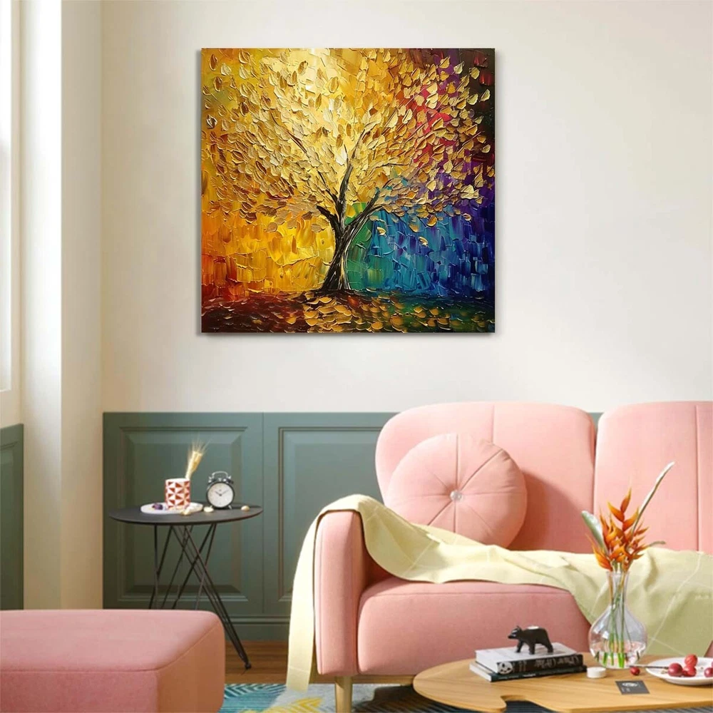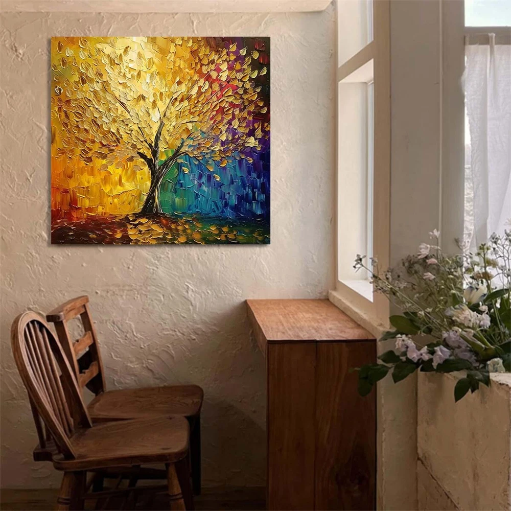 Abstract Art Thick Knife Oil Painting Handpainted Canvas 3D Lucky Tree #022
