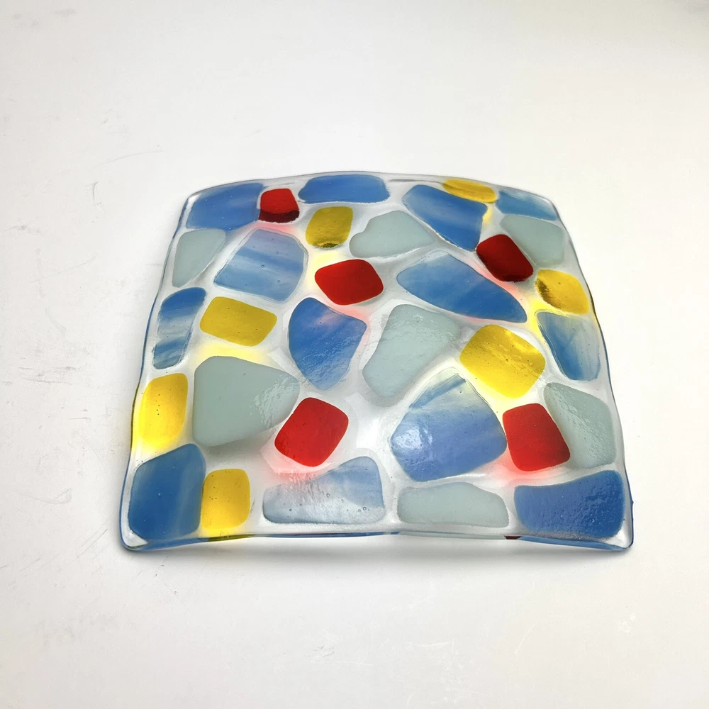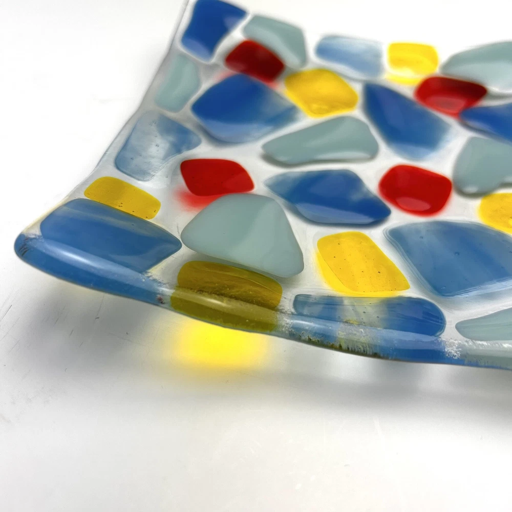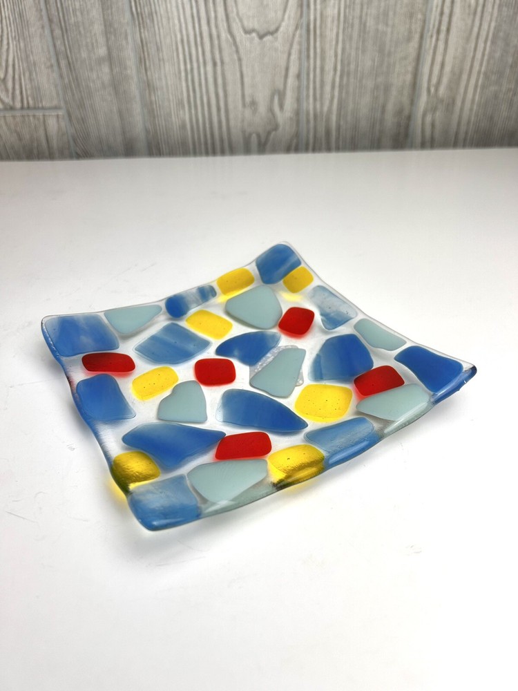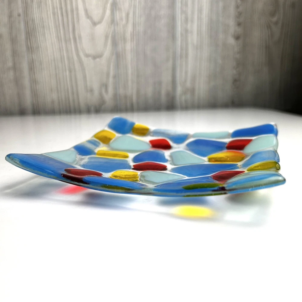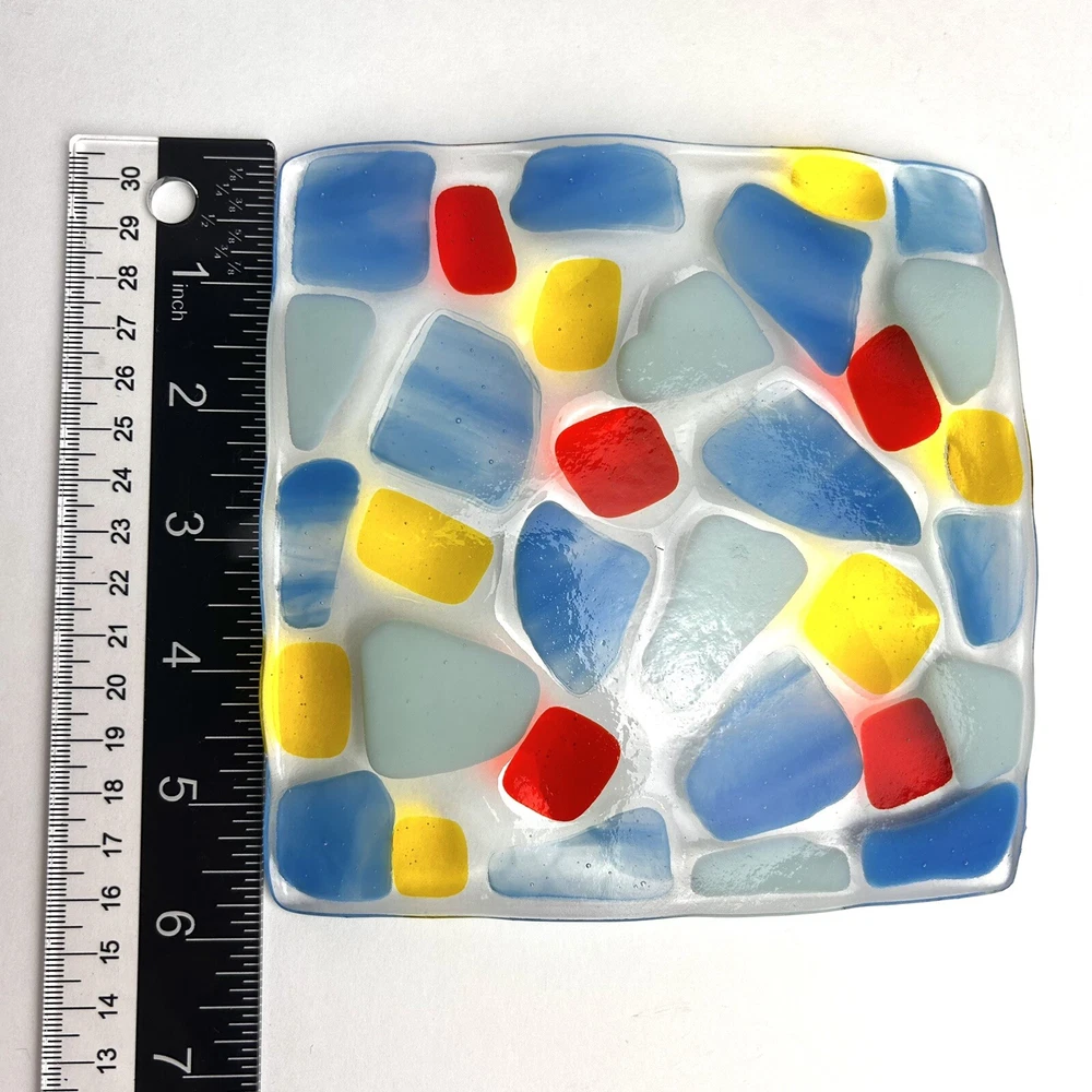 Add a touch of retro charm to your dining table with this colorful Abstract Fused Art Glass Dish Candy Bowl Trivet. This decorative piece is perfect for serving candy, nuts, or other small treats during your next gathering. You can also use this dish trinket for your jewelry. Very good condition . Please review all pictures for details.