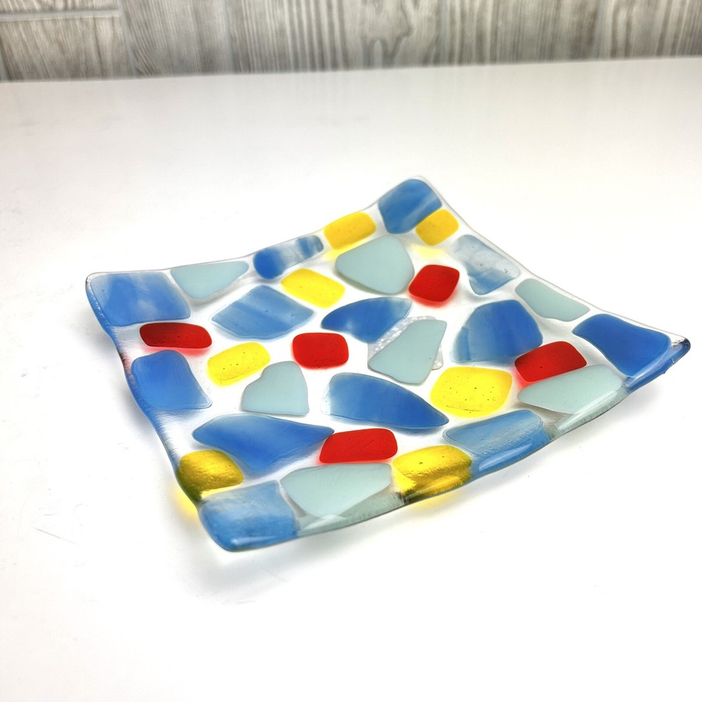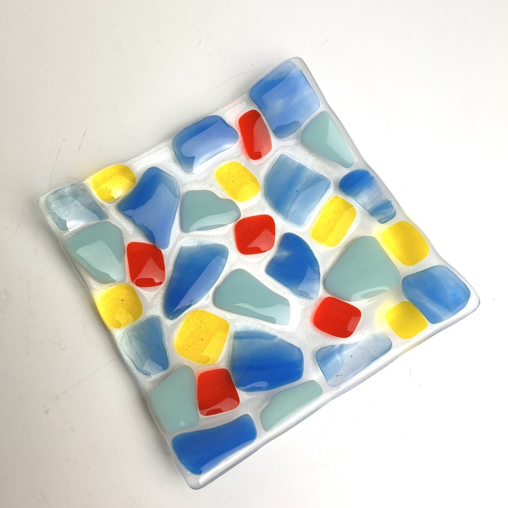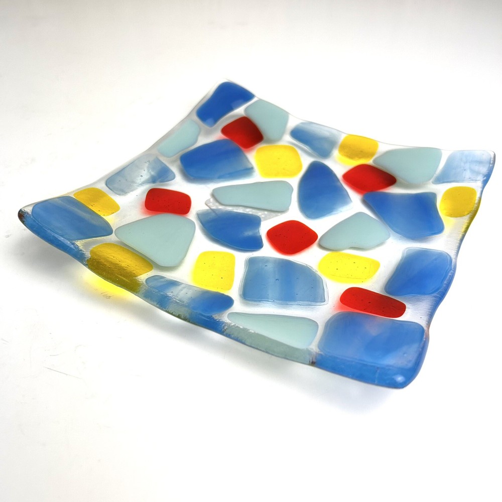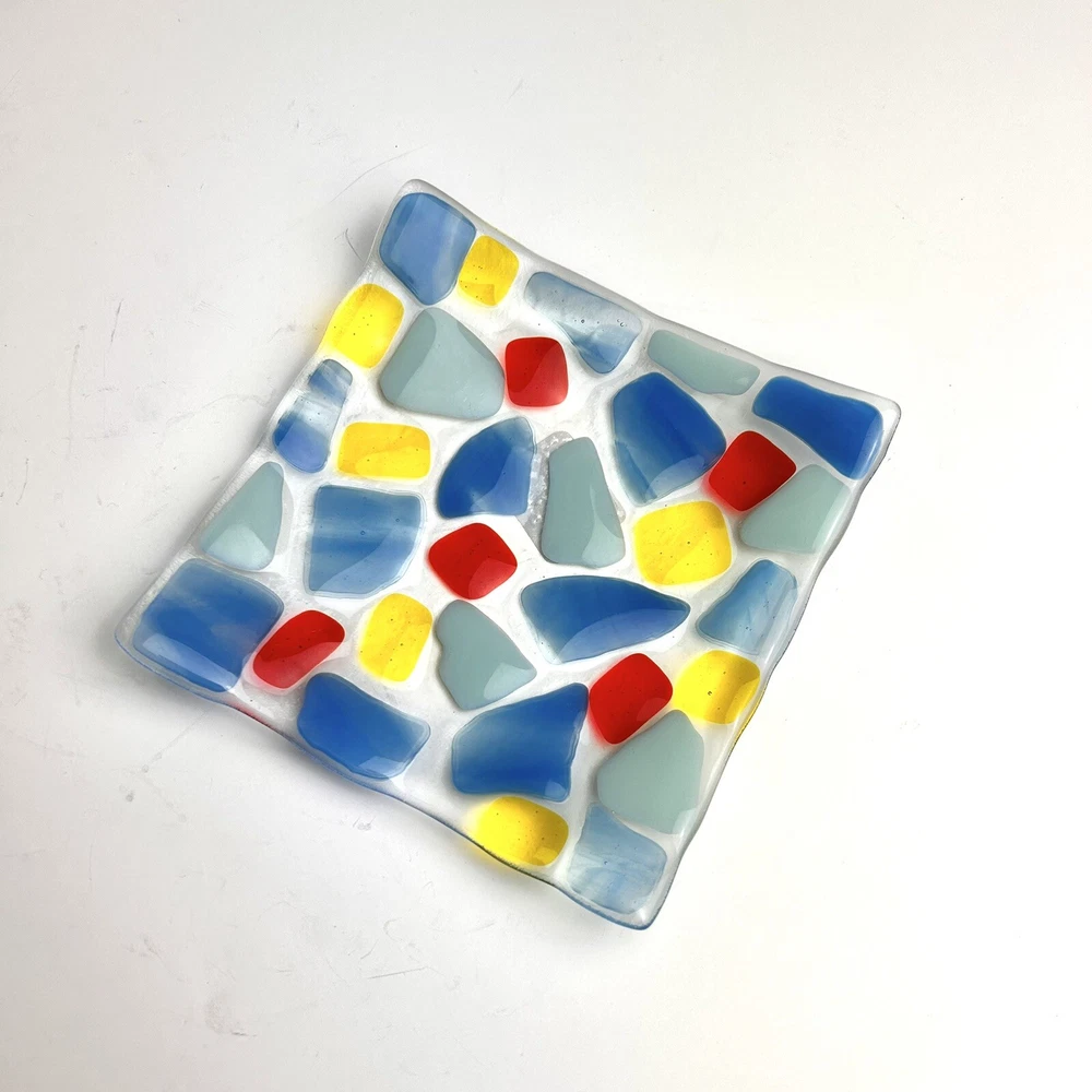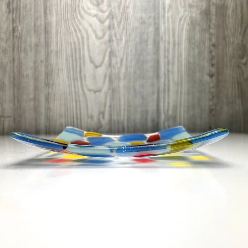 Add a touch of retro charm to your dining table with this colorful Abstract Fused Art Glass Dish Candy Bowl Trivet. This decorative piece is perfect for serving candy, nuts, or other small treats during your next gathering. You can also use this dish trinket for your jewelry. Very good condition . Please review all pictures for details.