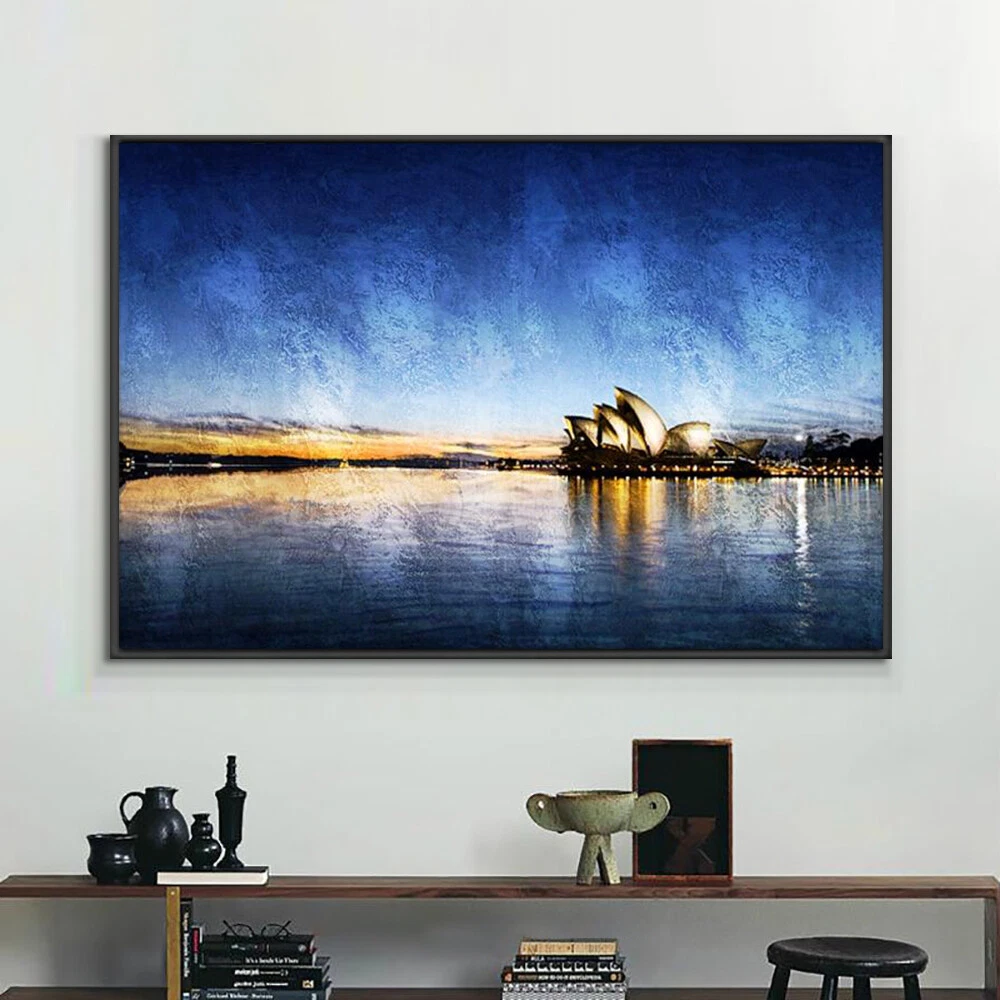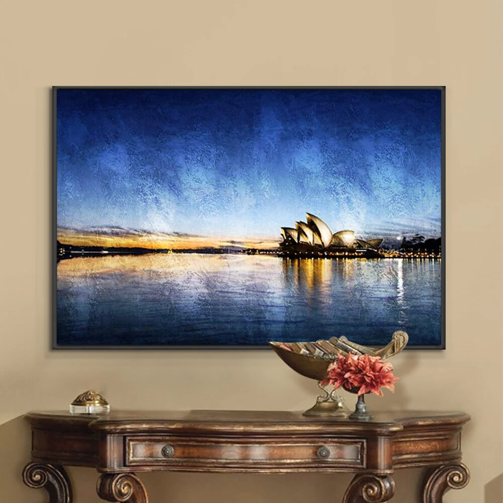 Abstract Blue Seascape Oil Painting Hand Painted Modern Landscape Canvas