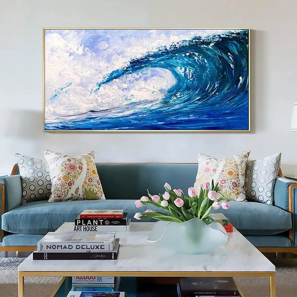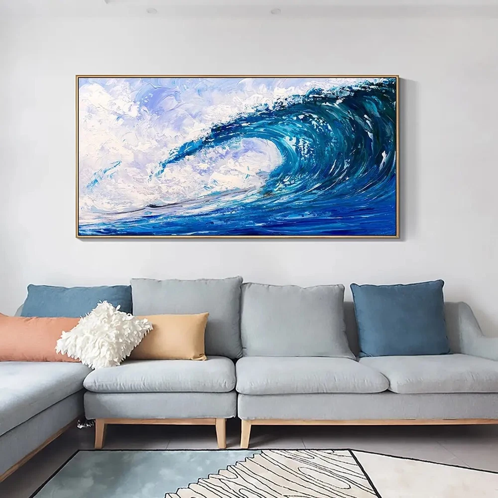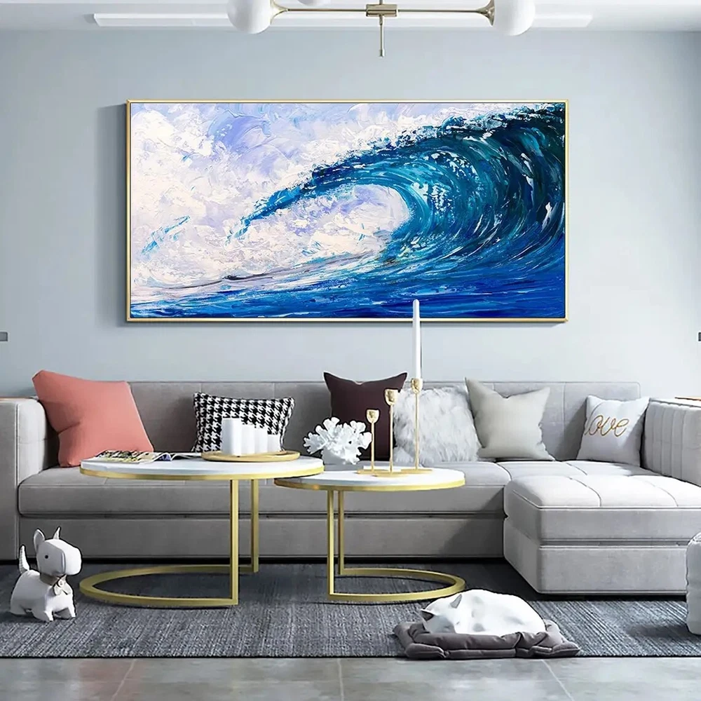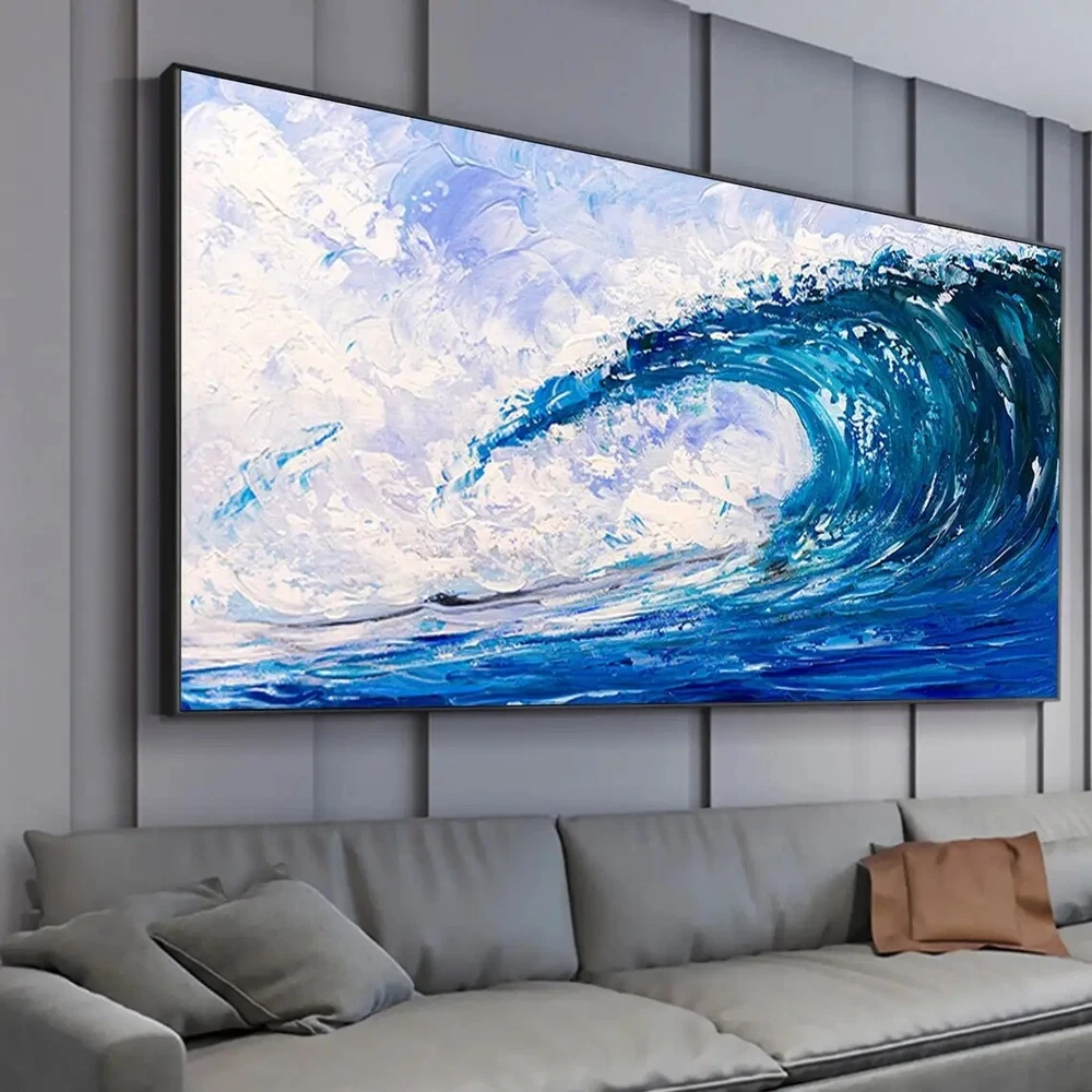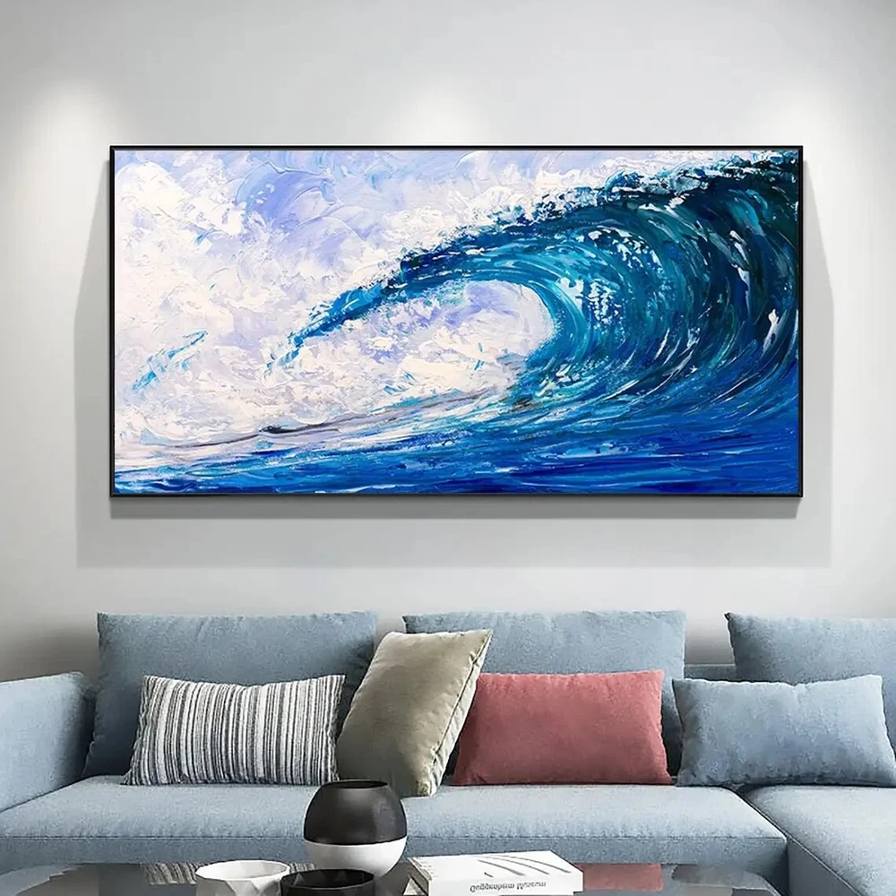 Abstract Blue Wave Hand Painted Oil Painting On Canvas Textured Acrylic Painting