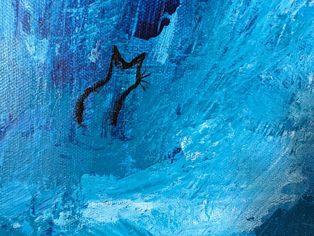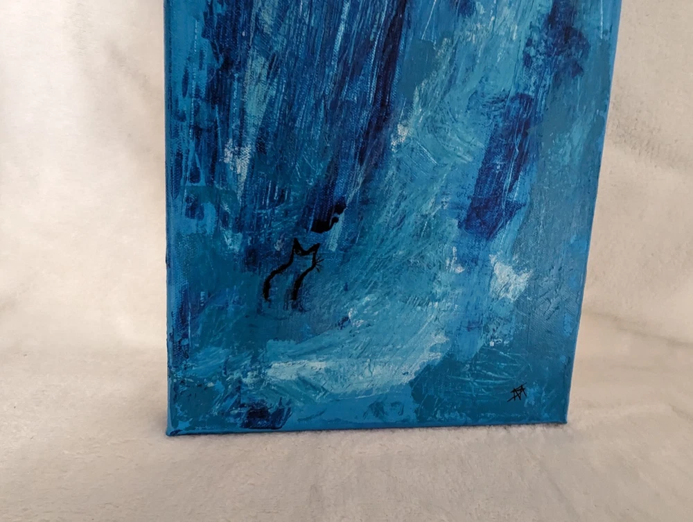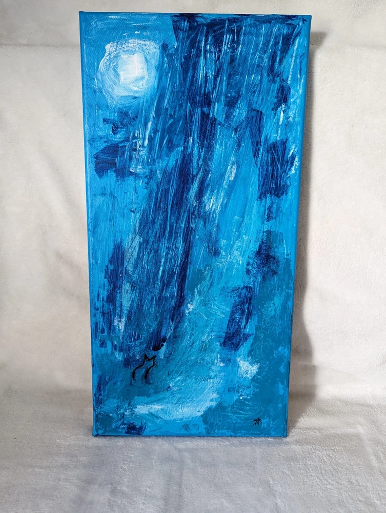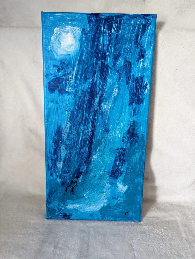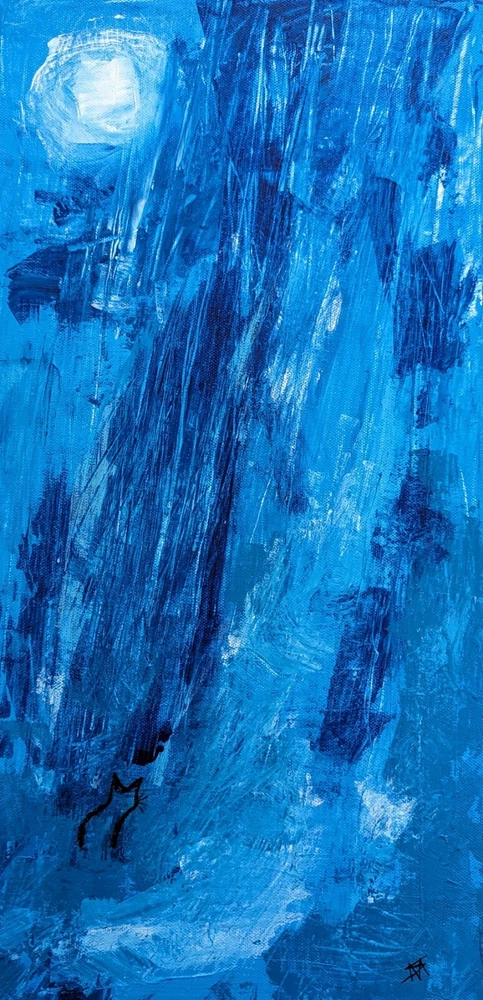 Original Cat Painting "Blue Moon Forest" by Samantha McLean 2023 10" x 20" Acrylic on Stretched Canvas
