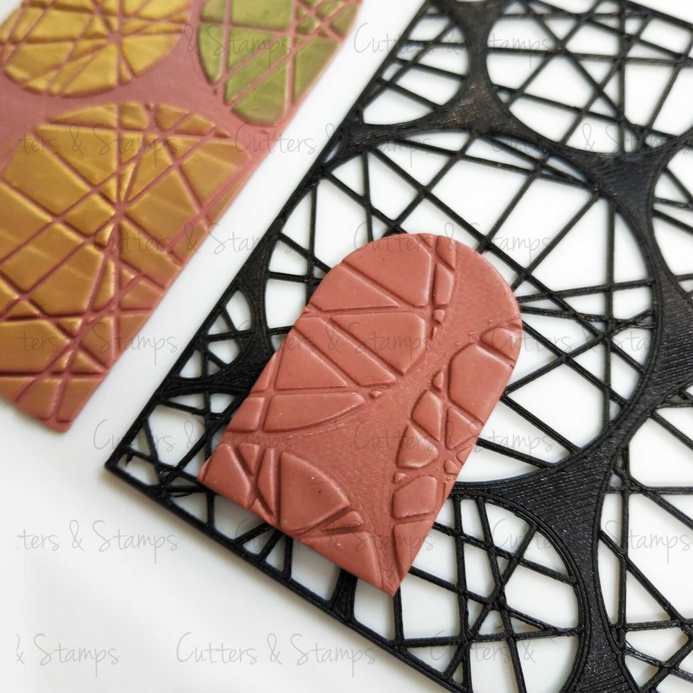 ABSTRACT CIRCLES Clay Stencil | Texture stamp for clay | Clay Texture ●● DESCRIPTION ●● Our stencil is perfect for adding unique patterns and textures to your clay creations. Whether you're a seasoned artist or just starting out, our stencil is easy to use and offers endless creative possibilities. Simply place it on your clay surface, apply pressure, and lift to reveal stunning imprints. With a variety of designs available, you'll find the perfect stencil to enhance your pottery, Polymer clay Jewelry and more. ●● SIZE ●● 100mm X 100mm 4inch X 4inch ●● CARE INSTRUCTIONS ●● To ensure the longevity of your texture tile, please follow these care instructions: - Keep the texture tile away from heat sources exceeding 70°C to prevent any distortion or damage. - Hand wash the texture tile only, using mild soap and lukewarm water. Avoid using hot water to clean. - Do not bend the texture tile, as this may cause it to crack or break. - If you're using mica, Paint or liquid clay to texture the clay, we recommend soaking the stencil in normal water immediately after use to remove any residue. Following these care instructions will help maintain the quality of your Stencil for countless Imprints.