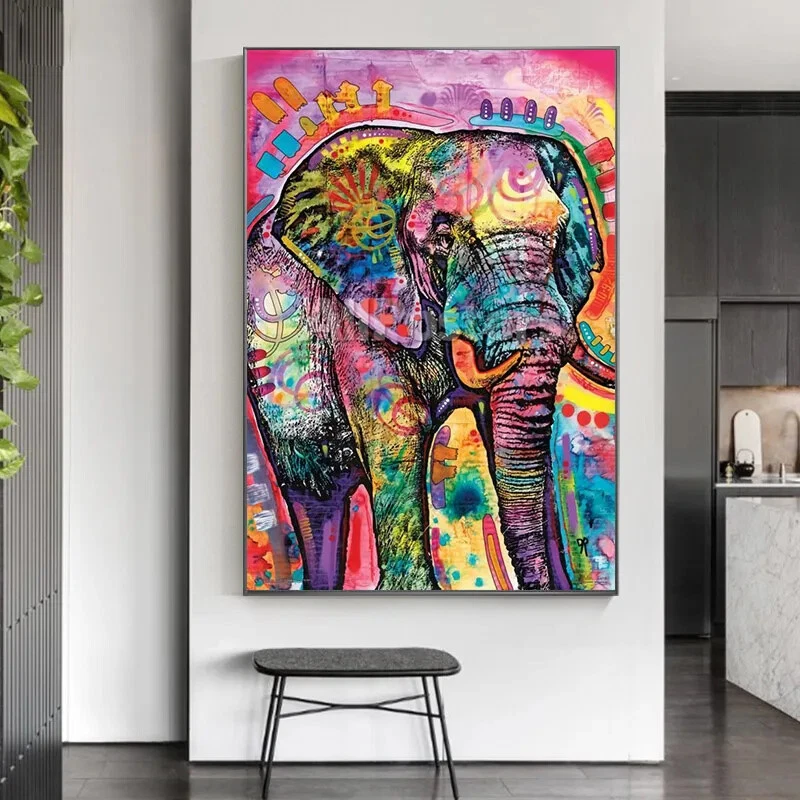 Abstract Colorful Elephant Graffiti Posters Canvas Painting Wall Art Picture
