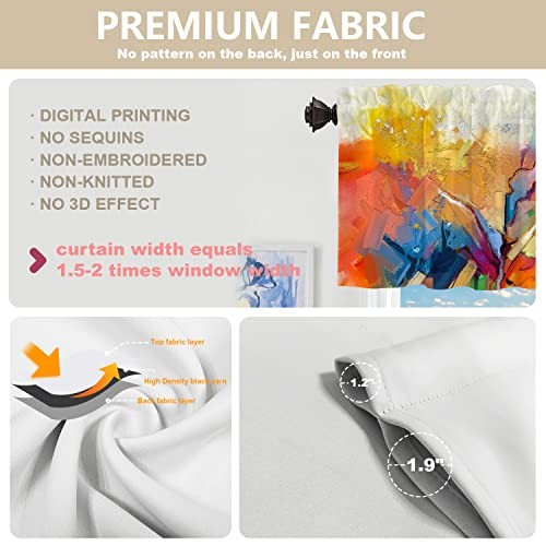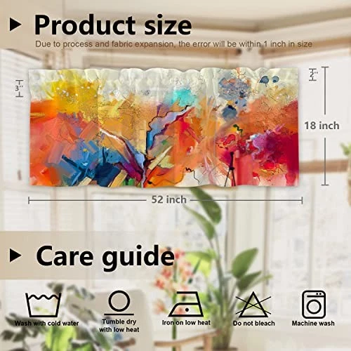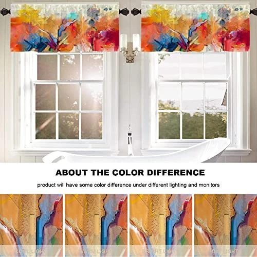 Return Policy Fast Delivery Trusted seller Abstract Colorful Color Kitchen Valances Half Window Curtain, Abstract Painting in Blue Green Design Blackout Decoration Window Valances Curtains Drapes for Kitchen Bedroom, 52 X 18 Inch Product Description Dimensions: Standard size 52x18 inch,set of 2 including 2 inch header and 3 inch rod pocket.After the curtain is straightened, it is suitable for windows with a length of 40-44 inches. If you want to make the curtain appear wrinkled, it is recommended to use the curtain for windows with a length of 26-35 inches. Material: The valance is made of 2 layers of high quality polyester fabric with a black shading layer in the middle. High-definition laser-printing pattern is lively, vivid.Due to the black shading layer in the middle of the curtain, the overall tone is slightly gray. Production Characteristics: Different pattern is perfect for protecting privacy and reducing light.Cozy and flowing, just enough to soften a stark window frame without blocking natural light, Colorful valance is also a beautiful decoration and brings fun to your house. Care Guide:Easy to clean. Machine washable,aslo wash your hands gently with cold water and dry only in the shade. Wash with cold water and gently circulate. Dry at low temperature and do not bleach. You can easily iron at low temperatures. Special Reminder: T will be creases after the curtain is packaged, and the texture of the crease will become larger when it is unfolded, but it can be restored after it is flat. The surface of the curtain is smooth, and contact with sharp objects will scratch the fabric. Shipping Returns Payment Shipping Shipping is FREE to all addresses other than APO/PO boxes in the lower 48 states. All our stock ships from US-based warehouses. Shipped via USPS or UPS (depending on location and package weight) Unless stated otherwise, all orders will ship within 24-72 hours of your payment being processed. Check our feedback to see the great reviews of FAST shipping we offer. Returns Seller does not accept returns Payment We currently accept payment via eBay managed payments only. Once payment is cleared, we will dispatch your shipment within 1-3 business days. Please refer to the "Shipping" tab for more information regarding shipping speed to your destination.