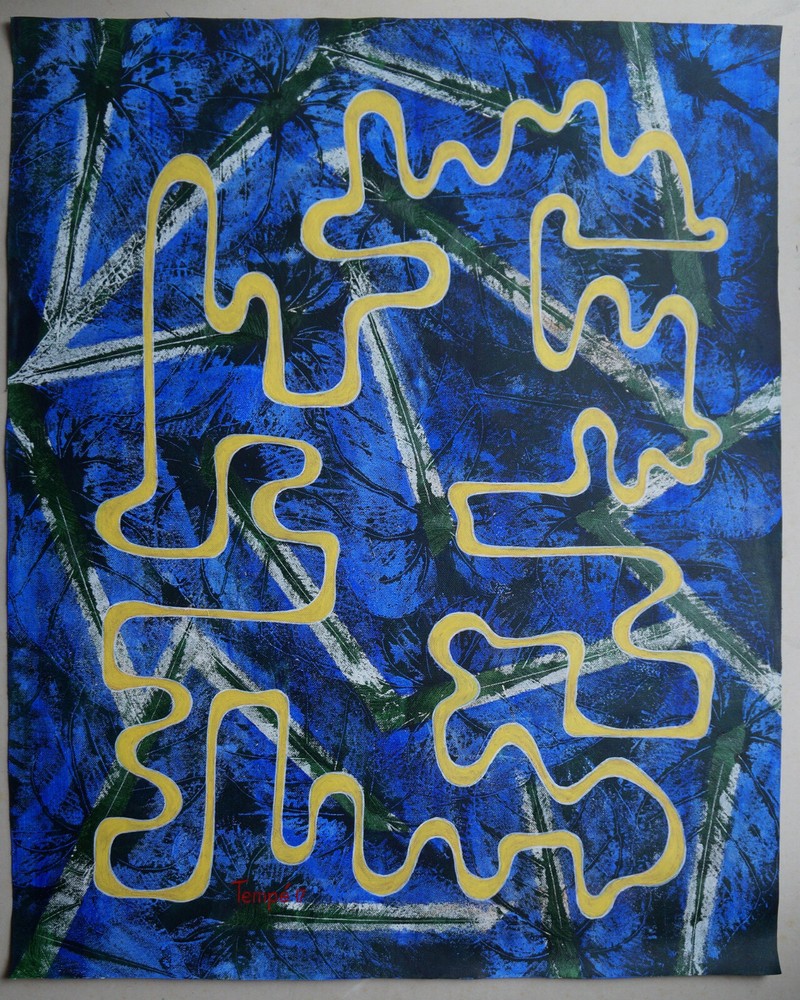 Acrylic on Paper Composition Abstract Signed TEMPE (20th)