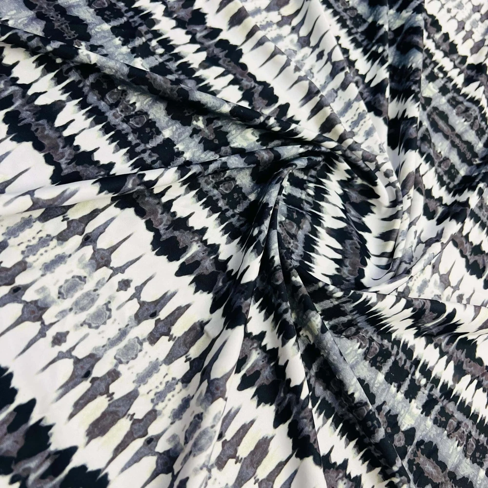 This fabric is absolutely stunning—the abstract dark grey and white print is so stylish and versatile! The 4-way stretch makes it super comfortable for swimwear and activewear, and the quality is top-notch. Super soft, lightweight, and holds its shape perfectly. Perfect for any project, from swimsuits to yoga wear. The price is unbeatable for such high-end material. Fast shipping too—definitely stocking up on more!