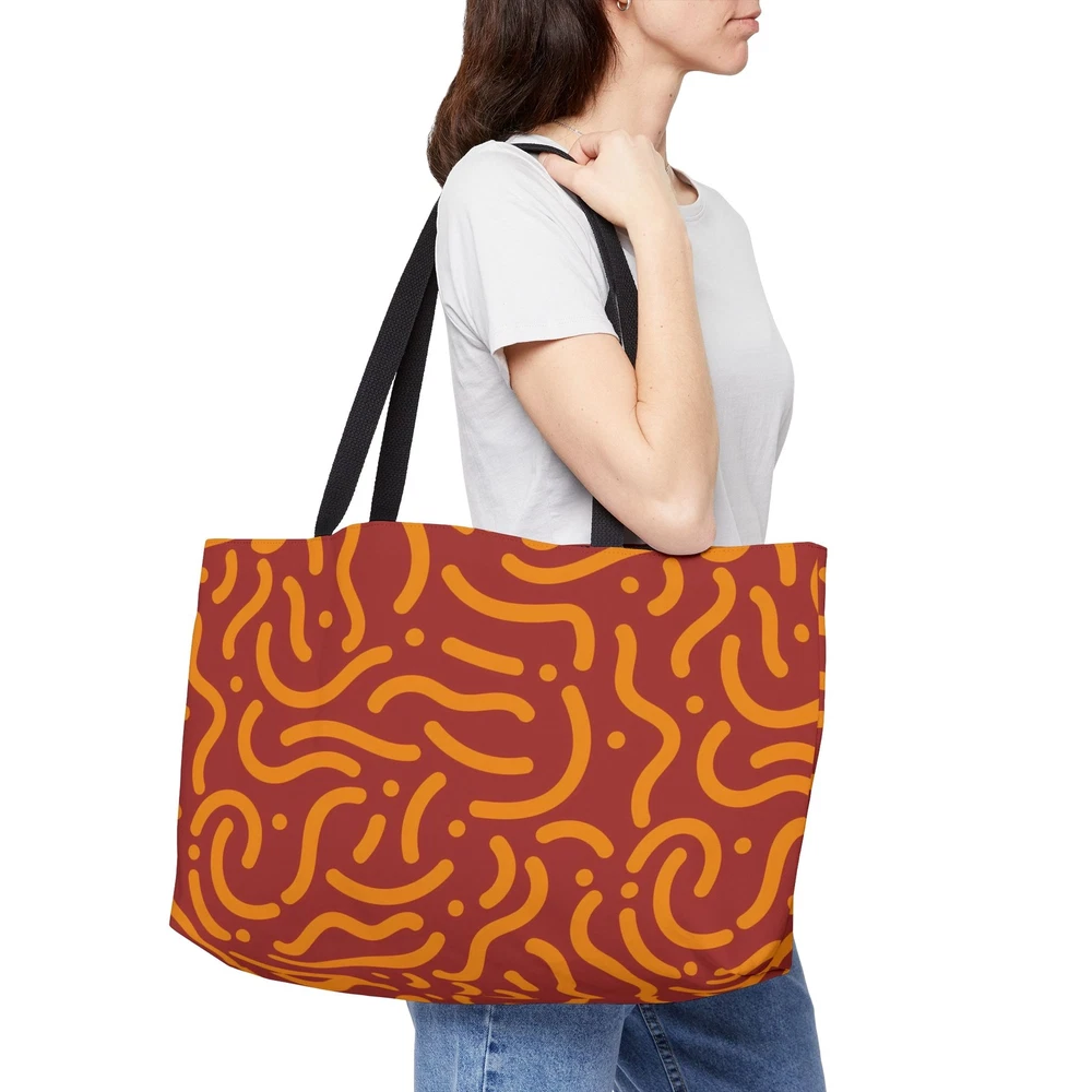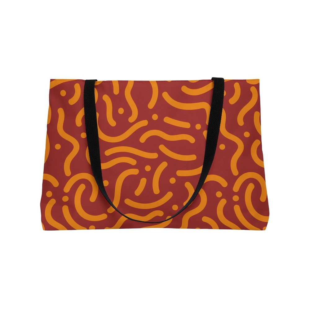 This versatile Weekender Tote Bag is perfect for weekend getaways, gym trips, or daily use. Made from durable 100% spun polyester, it provides ample space for all your essentials with its spacious 24” x 13” design. The T-bottom construction adds stability, while the double-stitched handles ensure comfort and reliability. The stylish all-over print and black interior lining make this bag both functional and fashionable for any occasion. Material: 100% spun polyester for durability and long-lasting use. Size: 24” x 13” (60.9 cm x 33 cm), spacious enough for weekend trips or daily use. Design: Modern all-over print for a stylish touch. Interior: Black lining, easy to maintain and complements the design. Construction: T-bottom provides extra stability and support. Handles: Double-stitched for comfort and reliability. Care: Spot clean or hand wash for easy maintenance. 24" × 13" Width, in 24.00 Height, in 13.00 Depth, in 2.01