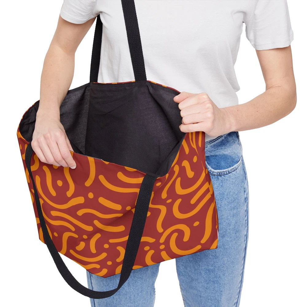 Love this tote—bright, durable, and super spacious! Perfect for gym days, travel, or everyday errands. The T-bottom keeps it steady, and the comfy handles hold up well even when packed. The bold print looks great, and the black lining hides stains. Lightweight yet sturdy, it’s become my go-to bag for anything!