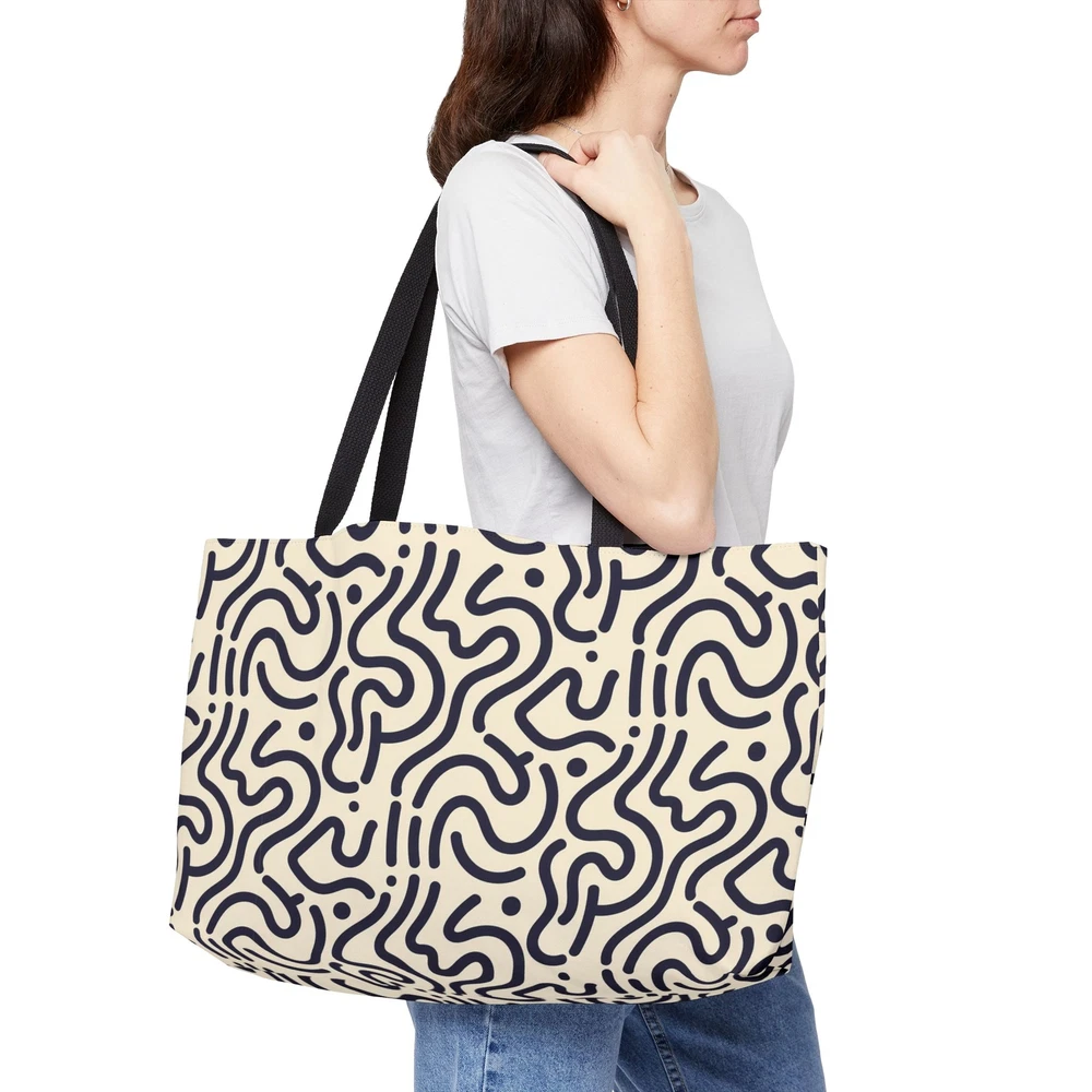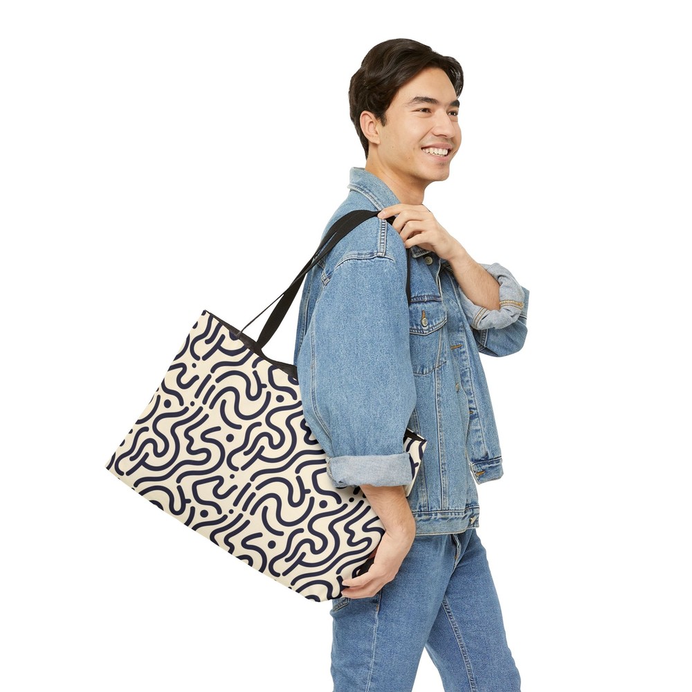 This versatile Weekender Tote Bag is perfect for weekend getaways, gym trips, or daily use. Made from durable 100% spun polyester, it provides ample space for all your essentials with its spacious 24” x 13” design. The T-bottom construction adds stability, while the double-stitched handles ensure comfort and reliability. The stylish all-over print and black interior lining make this bag both functional and fashionable for any occasion. Material: 100% spun polyester for durability and long-lasting use. Size: 24” x 13” (60.9 cm x 33 cm), spacious enough for weekend trips or daily use. Design: Modern all-over print for a stylish touch. Interior: Black lining, easy to maintain and complements the design. Construction: T-bottom provides extra stability and support. Handles: Double-stitched for comfort and reliability. Care: Spot clean or hand wash for easy maintenance. 24" × 13" Width, in 24.00 Height, in 13.00 Depth, in 2.01