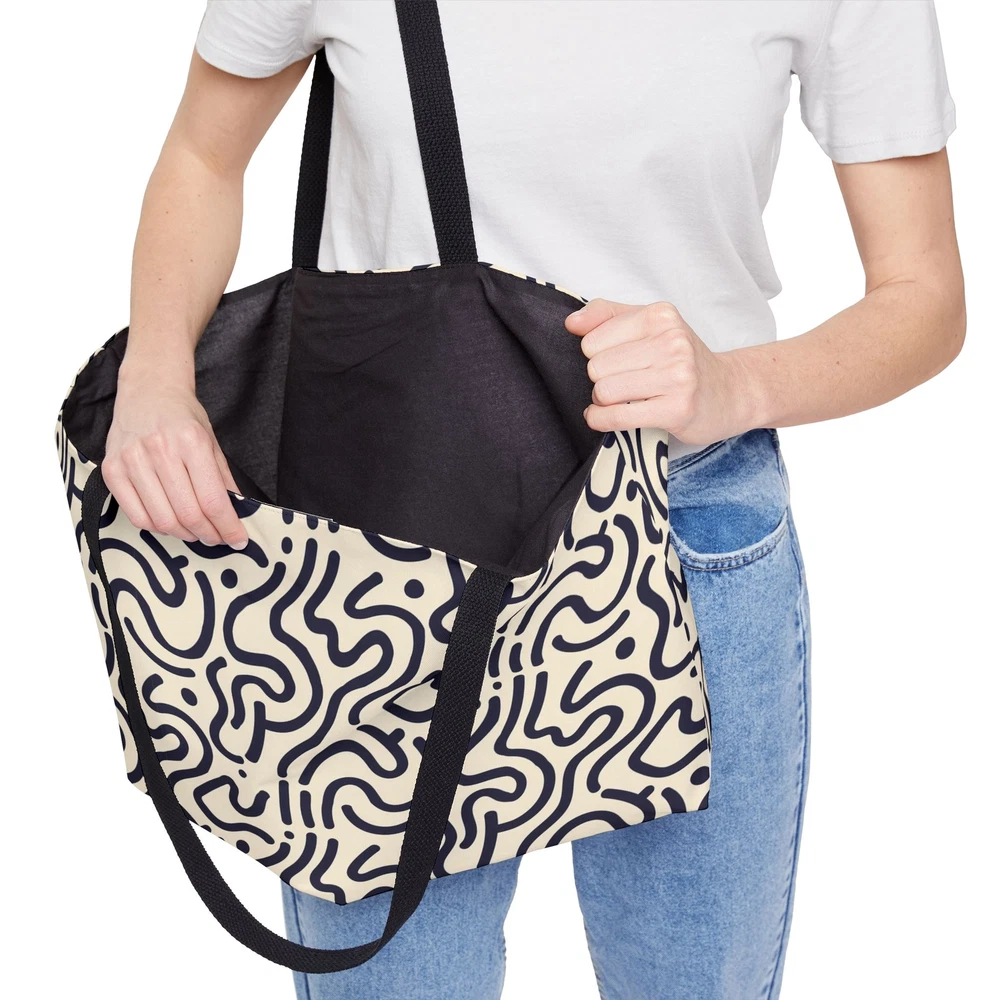 Love this stylish and durable tote! Perfect for weekends, gym, or errands—fits everything I need. The print is eye-catching, the fabric feels sturdy, and the comfy handles make carrying a breeze. The black lining keeps it looking sleek, and the T-bottom adds stability. A must-have for anyone who needs a reliable, fashionable bag!