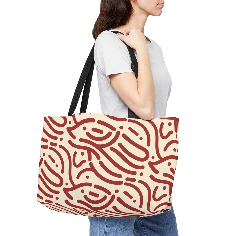Abstract Doodles Weekender Tote Bag (Beige/Brown) 100% Polyester | 24” x 13”