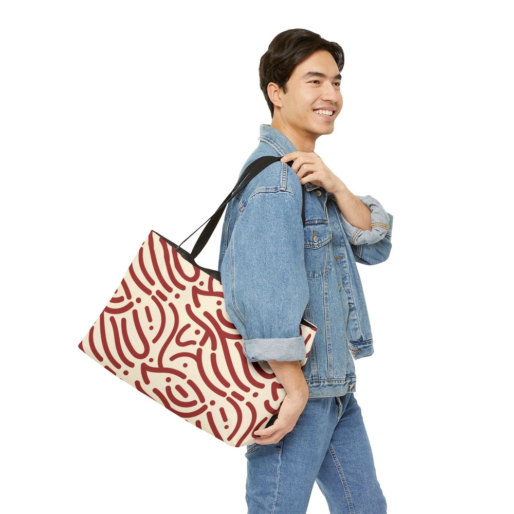 This versatile Weekender Tote Bag is perfect for weekend getaways, gym trips, or daily use. Made from durable 100% spun polyester, it provides ample space for all your essentials with its spacious 24” x 13” design. The T-bottom construction adds stability, while the double-stitched handles ensure comfort and reliability. The stylish all-over print and black interior lining make this bag both functional and fashionable for any occasion. Material: 100% spun polyester for durability and long-lasting use. Size: 24” x 13” (60.9 cm x 33 cm), spacious enough for weekend trips or daily use. Design: Modern all-over print for a stylish touch. Interior: Black lining, easy to maintain and complements the design. Construction: T-bottom provides extra stability and support. Handles: Double-stitched for comfort and reliability. Care: Spot clean or hand wash for easy maintenance. 24" × 13" Width, in 24.00 Height, in 13.00 Depth, in 2.01