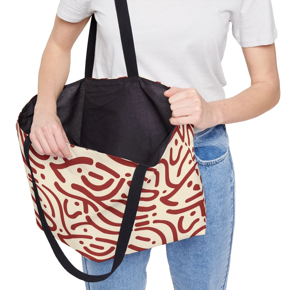 Exterior Material: Polyester Bag Width: 24 in Style: Tote Bag Height: 13 in Exterior Color: Beige Brand: Pattern Carry Co. Pattern: Geometric Department: Unisex Adults