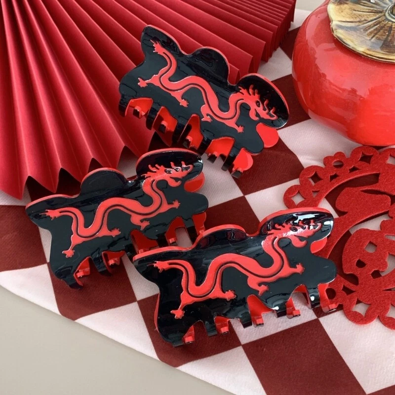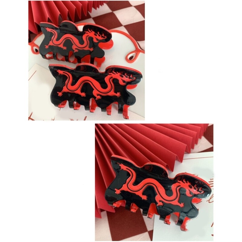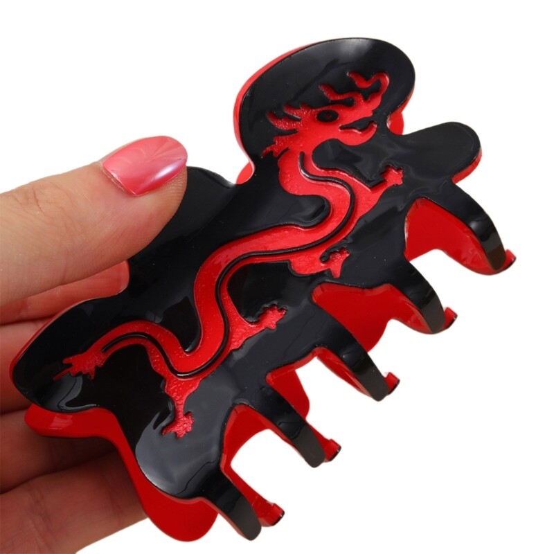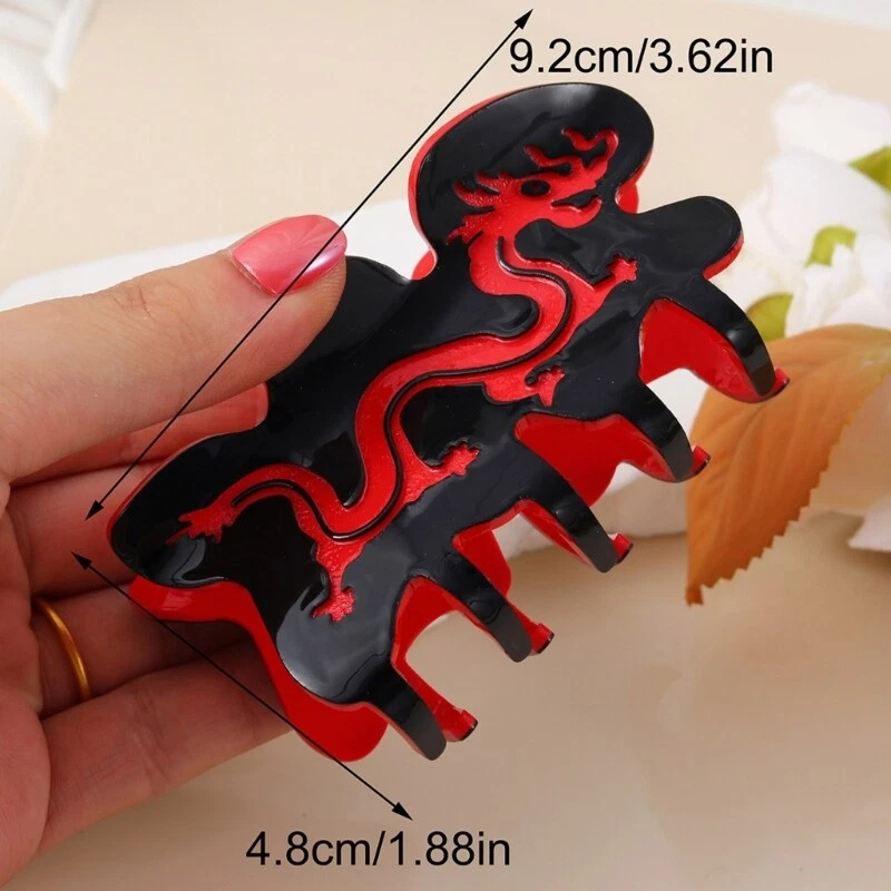 Features: This dragon hair claw is a must have accessory for women, adding a touch of elegant to any hairstyle. Made from durable Acrylic, this hair claw is not only lightweight and comfortable to wear, but also durable and long lasting. Designed for women who want to elevates their everyday look, this hair claw is suitable for all hair types and lengths. Whether you're attending a party or going about your daily activities, this hair claw will securely hold your hair in place, ensuring a fashion and polished appearance. With its dragon designed, this hair claw is the perfect accessory to expresses your unique of and add a feminine touch to any outfit. Specifications: Material: Acrylic Size: Approx. 9x4cm/ 3.54x1.57in Color: Black&Redness Package Includes: 1pc Dragon Shape Hair Claw note: Please allow 1-2cm errors due to manual measurement, make sure that you do not mind before you order. 2: Due to the difference between different monitors, the picture may not reflect the actual color of the item.