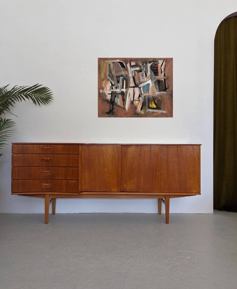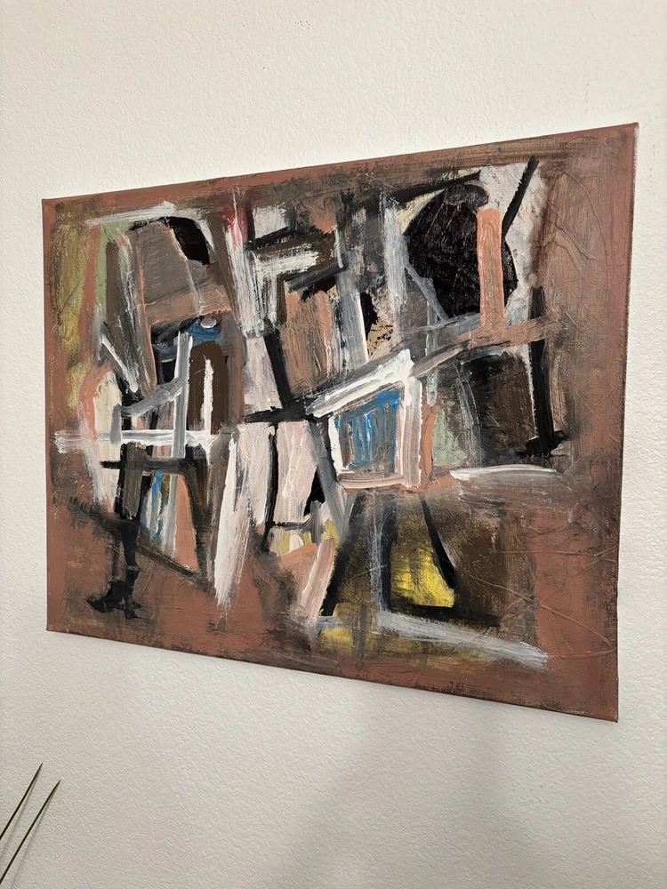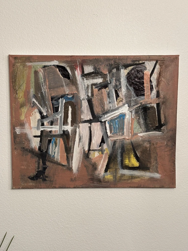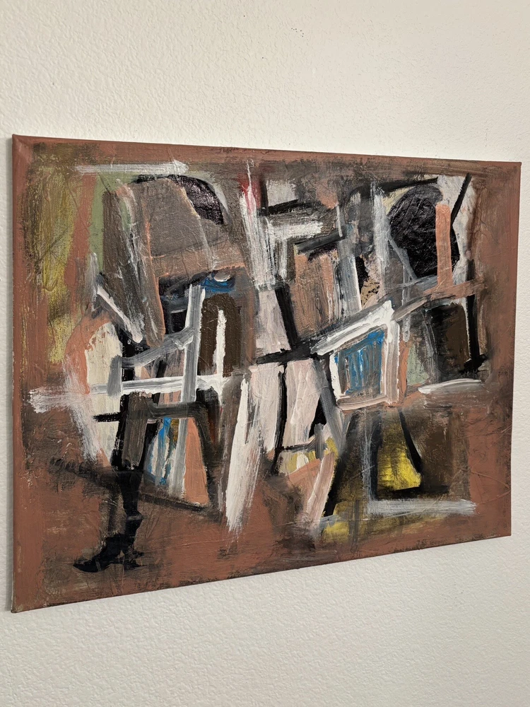 Original Abstract Acrylic mixed media Mid century Modern style inspired contemporary art painting. 20”x16”on canvas signed VJO on reverse one of kind piece. Unframed Hello, Thank you for taking the time to view my art. I have been painting now for 26 years and have sold various pieces all over the world. I have been in many group shows here in California. Please view my other art on this platform. This is one of kind piece no prints will be made of this. The Last images are from my solo show back in May. Note: Staged images with furniture may appear larger or smaller than they are. All images were taken on IPhone 15 no modifications were done on images they are true to the camera. Please ask all questions before you plan to purchase all sales are final. NO RETURNS. Thank you again VJO