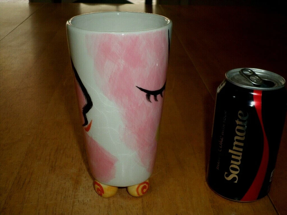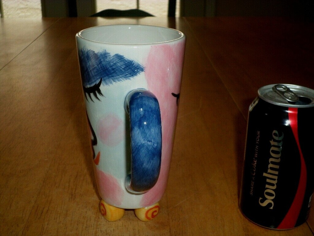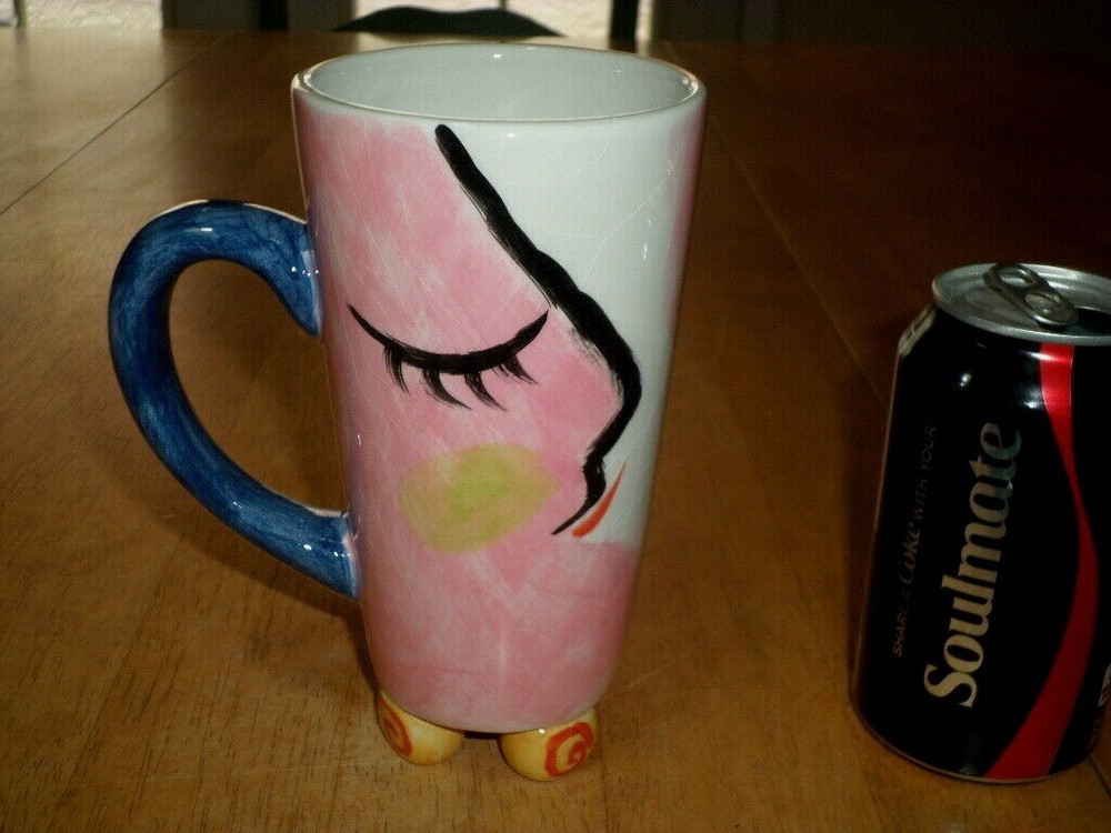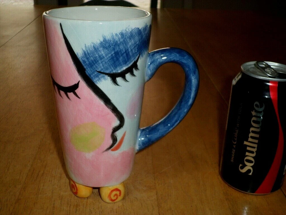 Vintage / HANDMADE & HAND PAINTED / NEW Condition. NO chips or cracks. NOTE: THE OUTER & INSIDE WALL GLAZE FINISH HAS SPIDERING / WEB LIKE MARS IN THE GLAZE FINISH. NOT AN ISSUE AT ALL FOR USAGE. See Photo's ----- ABSTRACT ART OF FACES, TALL & JUMBO SIZED , [ HANDMADE & HAND PAINTED ] , Ceramic Coffee Cup / Mug, VINTAGE ----- Approx size is: 3.25" inches across the mouth of the cup x 6.65" inches tall. { SOLID CONSTRUCTION & HEAVY IN WEIGHT } See Photo's for this is what you get when you buy this item. On the photos there is white spots on the cup that is from the camera flash reflecting back. This cup is a beautiful cup !!! If any questions please contact me ???? We also combine shipping on all additional purchases. Vintage / HANDMADE & HAND PAINTED / NEW Condition with THE OUTER & INSIDE WALL GLAZE FINISH HAS SPIDERING / WEB LIKE MARS IN THE GLAZE FINISH ==== SEE MY OTHER [#3] SIMILAR IMAGES CUPS FOR SALE BY THIS SAME ARTIST.