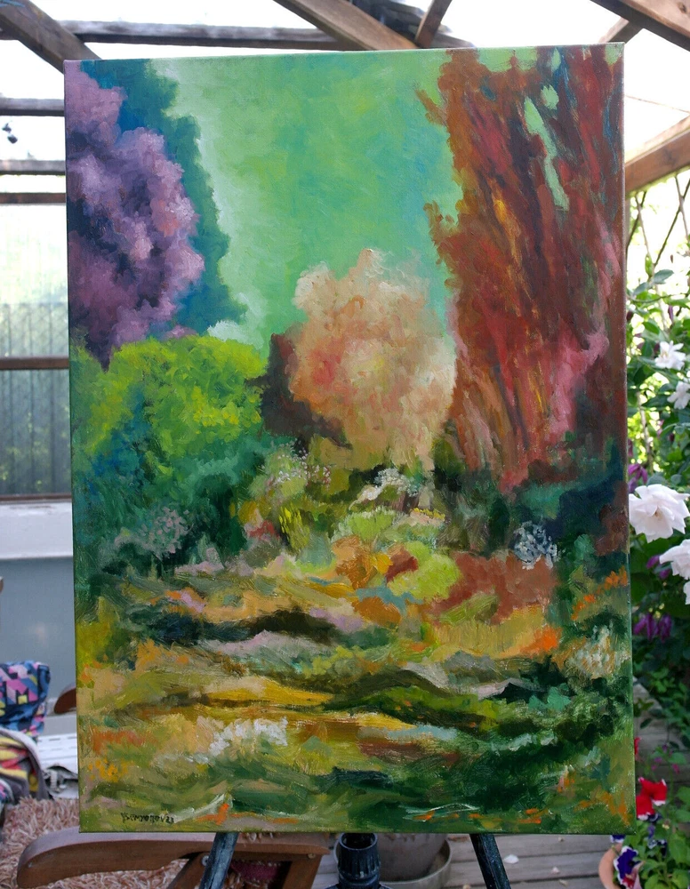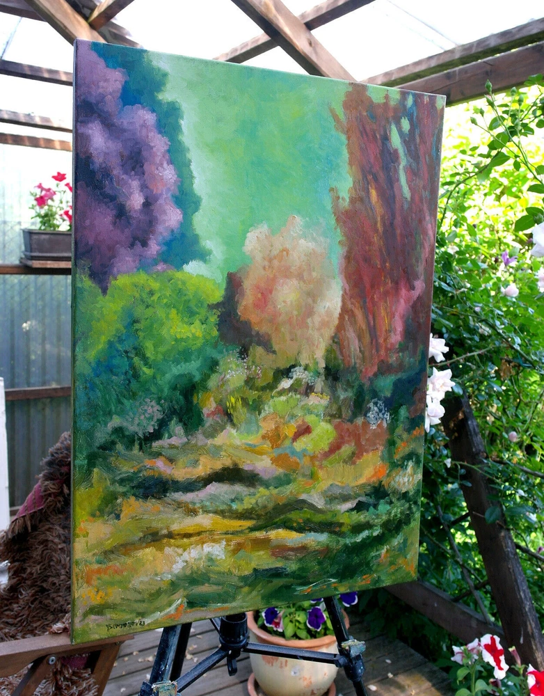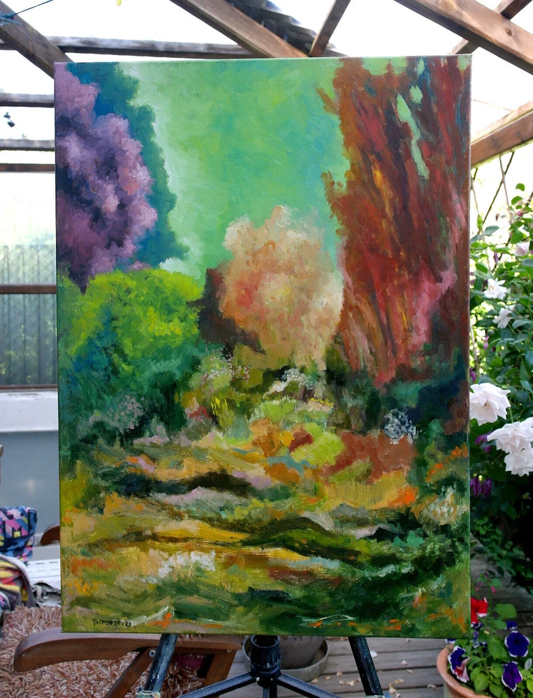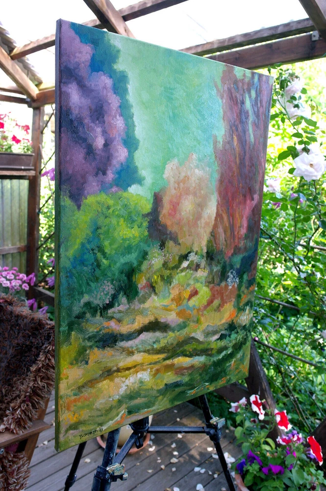 Fairy Tales Forest. The artwork is painted in an impressionistic manner. A range of green, brown, yellow and red colors are used. Oil on stretched canvas 50x70cm. Sides are painted. Ready to hang. I use professional quality oil paint, canvas with 3 layers of gesso, high quality varnish. Personally signed on the front and back. The colours of the original artwork may differ to that on your computer screen. Thank you for watching! JS