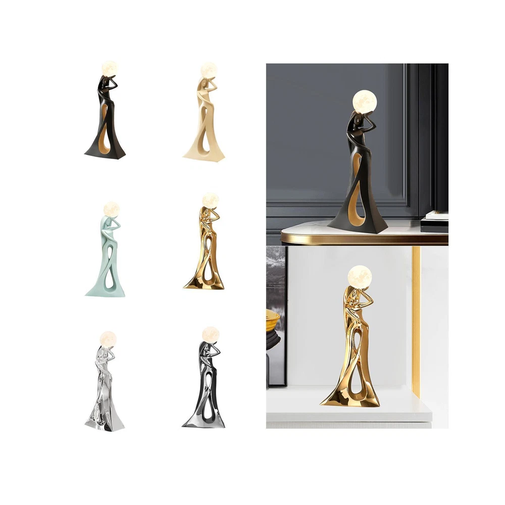 Crafts | Clothing, Shoes & Accessories | Home & Garden | Toys & Hobbies | Jewelry & Watches | Baby | Collectibles Abstract Figurine with LED Crafts Abstract Art Ornament for Desk Shelf Decor Description: 【Multicolor Changeable Moon Night Light】: This artistic sculpture features a multicolor changeable moon night light. With a tap, you can switch between warm and cool lighting, providing a soft and soothing glow. 【Stable Base】: The Modern sculpture has a stable center of weight, making it sturdy and not easy to tip over. It's great for placing on your entrance or home cabinet. 【Occasion】The Abstract Figurines with LED is especially suitable for household scenes such as porch, study, TV cabinet and bedroom. 【Resin Abstract Sculpture】: The Statue with smooth lines and great sculptural details make this piece an eye catching addition to any room decor. 【Practical Decorative】: Not only is this an great sculpture that adds a touch of luxury to your home decor, but it also serves as a practical night light for your bedroom or any other space in need of soft illumination. Specification: Material: Resin Size Chart: 15cmx8cmx35cm/5.91inchx3.15inchx13.78inch Package Includes: 1 Abstract Figurines with LED Note: Please allow slightly errors due to manual measurement and different monitors. Payment Shipping Returns If you are bidding or ordering more than one item, the items will be combined into one order automatically thus you can pay altogether. If you want not to combine, please buy one and immediately pay one separately. Please pay what you win in 7 days. Unpaid Dispute will be automatically open if payment is not received after 7 days. If you pay the bill after received unpaid dispute, please email us to close the unpaid dispute. Because the unpaid dispute will not be closed automatically, and we may ignore it. The buyer is responsible for any applicable import duties and local taxes. Please verify with your customs before making your purchase. Please verify your address during checkout. We are not responsible for any wrong or undeliverable addresses. We are committed to give you the best customer service possible. If for any reason you are unsatisfied with a purchase, please contact us and we'll assist you with a prompt solution. Please let us work on the issues. We'd like to settle any problem in a friendly manner. Please do not open a case on eBay or PayPal, or leave any negative or neutral feedbacks directly! We always reply to messages within 2 business days (off-duty at weekend). Due to the difference of time zone between Hong Kong and your location, sometimes the answer will be delayed. If you do not get a response from us after 2 business days, please check your junk or spam mailbox. Unsatisfied product can be returned within 30 days from the delivery date . We can offer a full refund or exchange, but we are not responsible for return shipping cost. Please contact us to get a RMA number before sending out your return. Feedback: 1. Since your feedback is very important to our business's development, we sincerely invite you to leave positive feedback with four 5-Detailed Selling Rating (DSR) to us basing on your satisfaction with our commodity and service. It's just take you 1 minute. 2. Unfortunately, If you are planning to give us a neutral/negative feedback because of your bad buying experience with us, please contact us at any time so as to clear up your discontent and resolve the problem. Featured Products People always bought together with