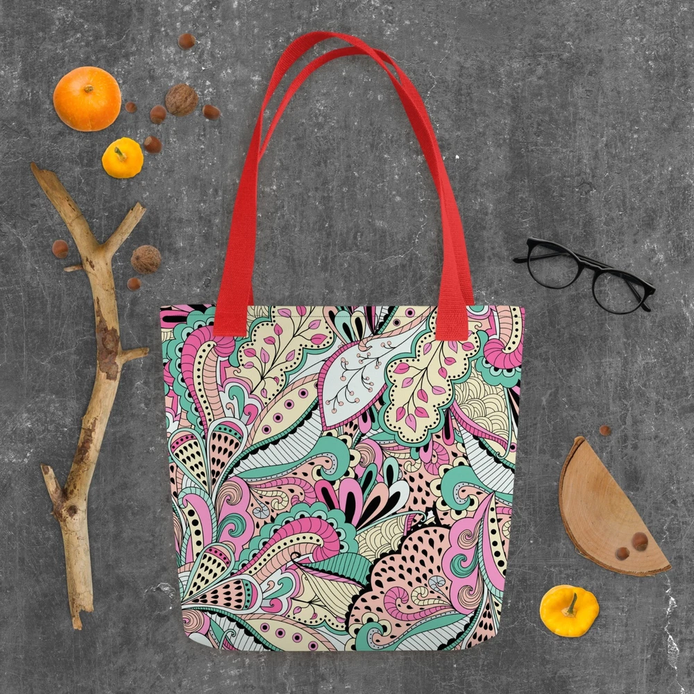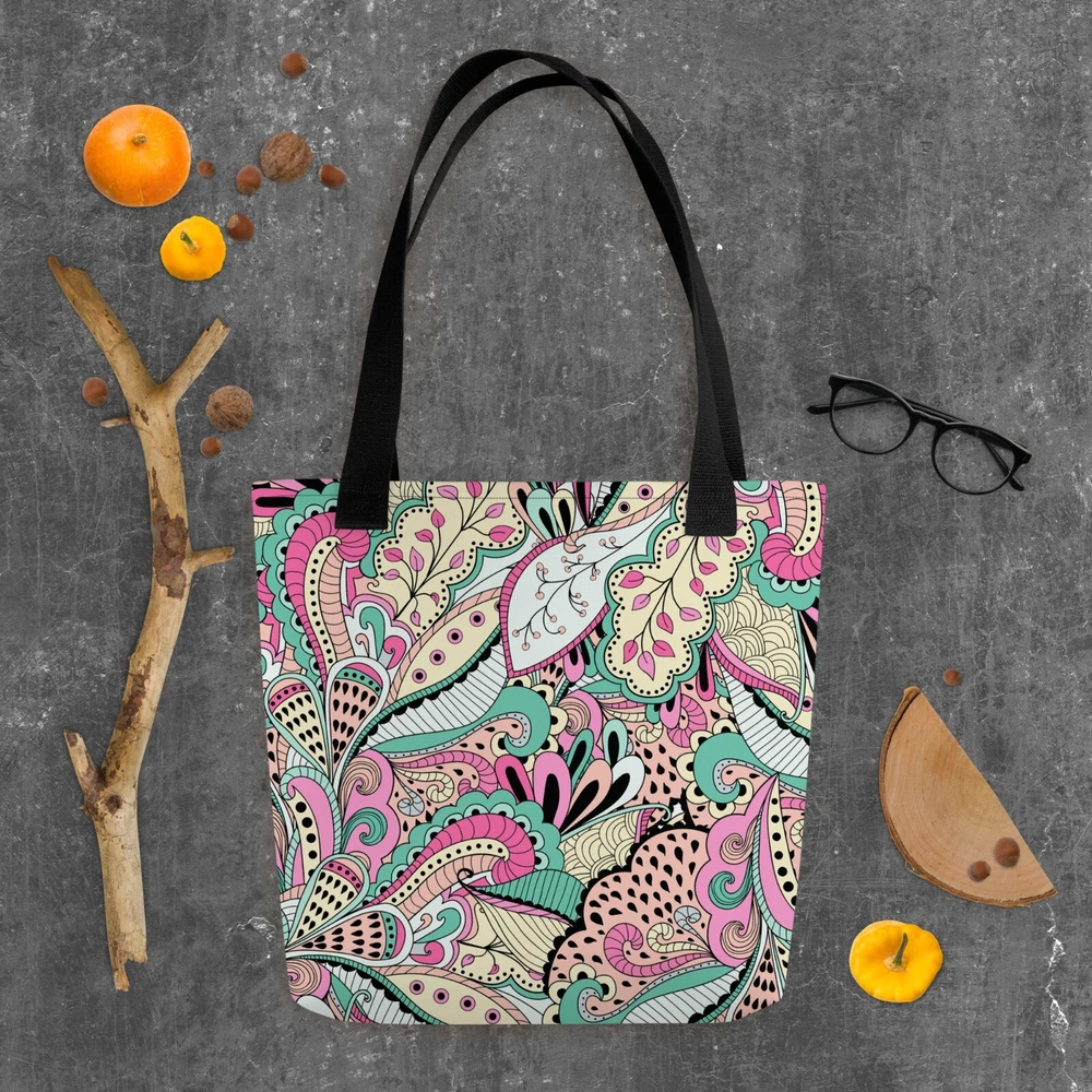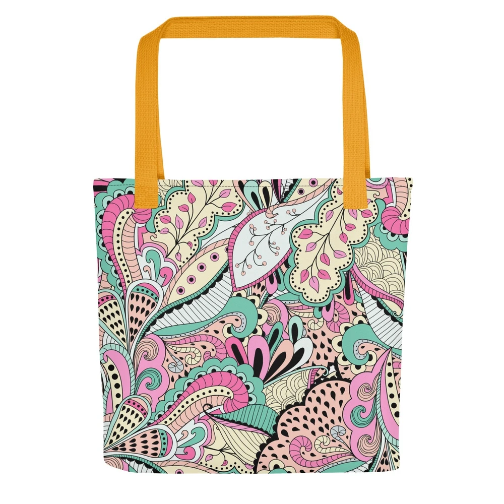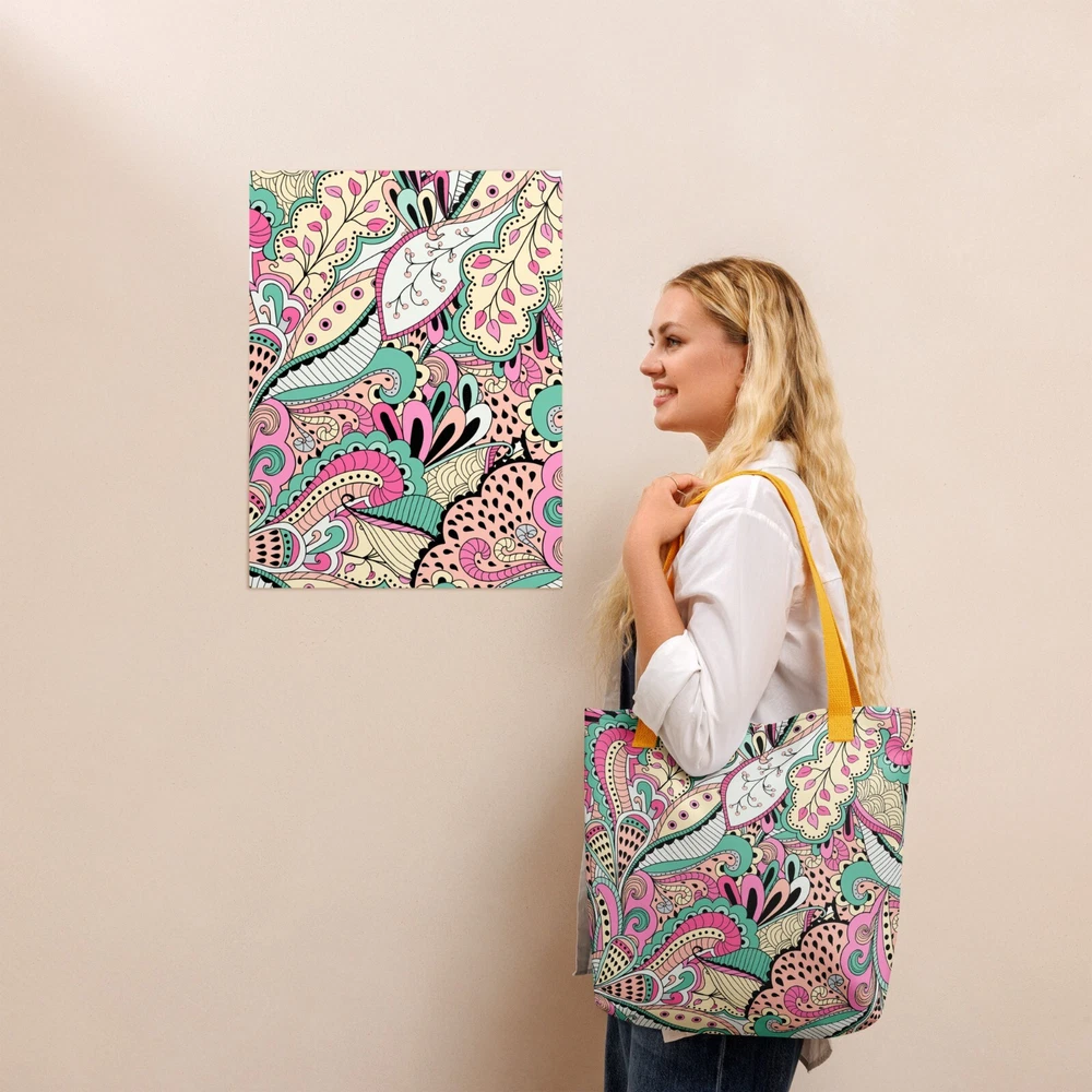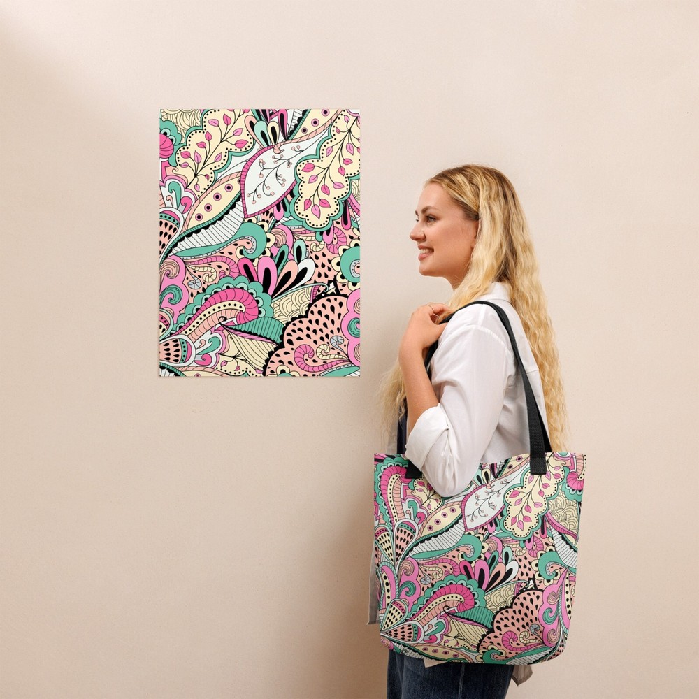 This tote bag is a stylish and practical must-have! The vibrant floral print adds a fun pop to any outfit, and the spacious interior easily fits all my daily essentials. The sturdy cotton handles are comfortable, even when carrying heavy loads. Love that it’s ethically made to order—perfect for eco-conscious shoppers. Highly recommend!