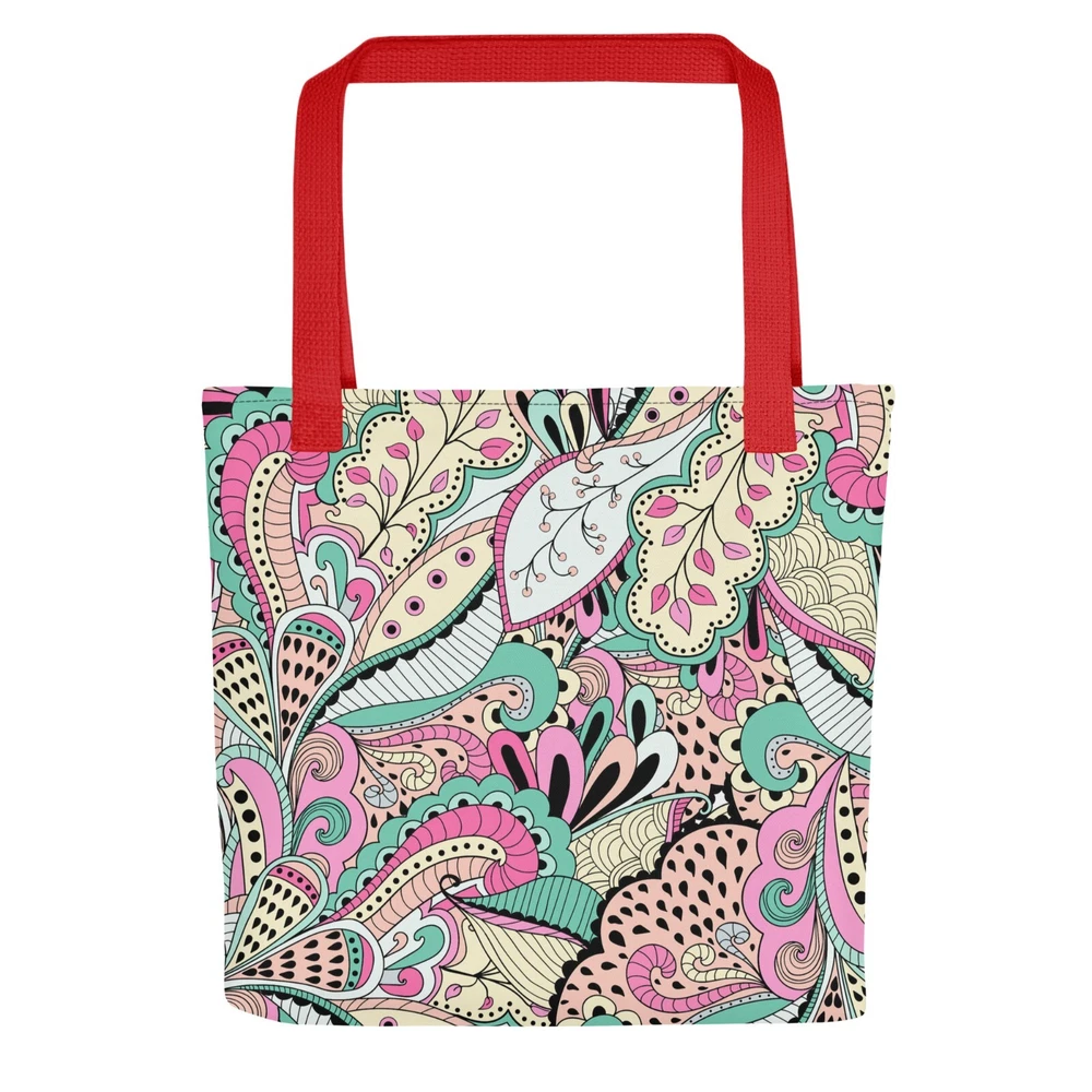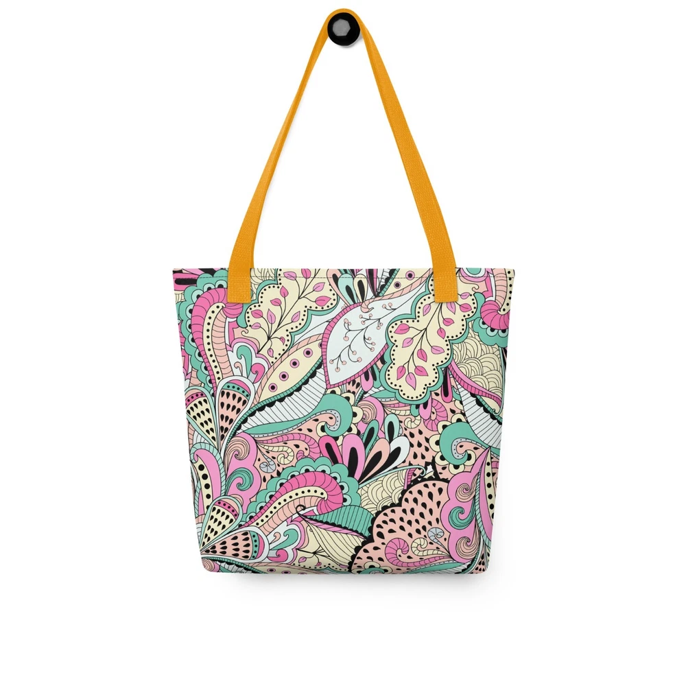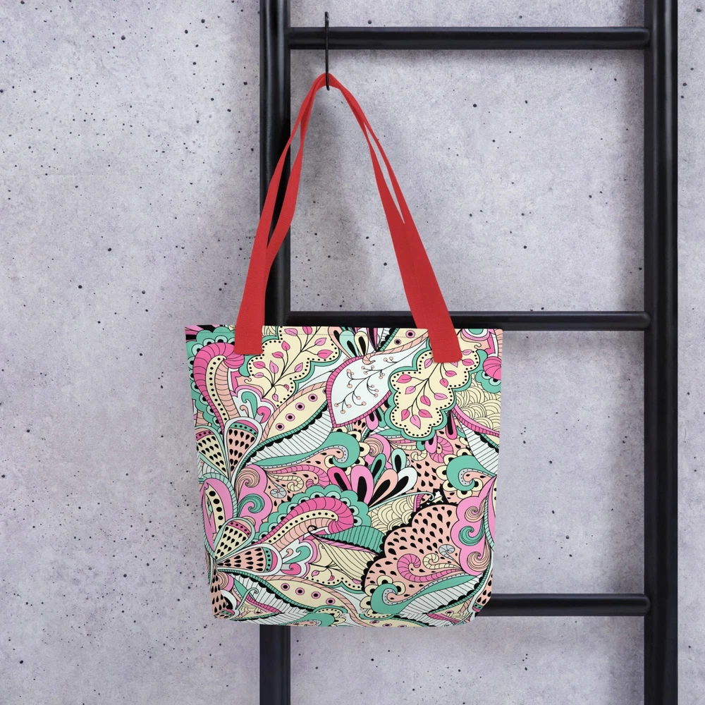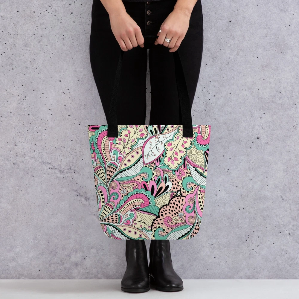 This tote bag is a stylish and practical must-have! The vibrant floral print adds a fun pop to any outfit, and the spacious interior easily fits all my daily essentials. The sturdy cotton handles are comfortable, even when carrying heavy loads. Love that it’s ethically made to order—perfect for eco-conscious shoppers. Highly recommend!