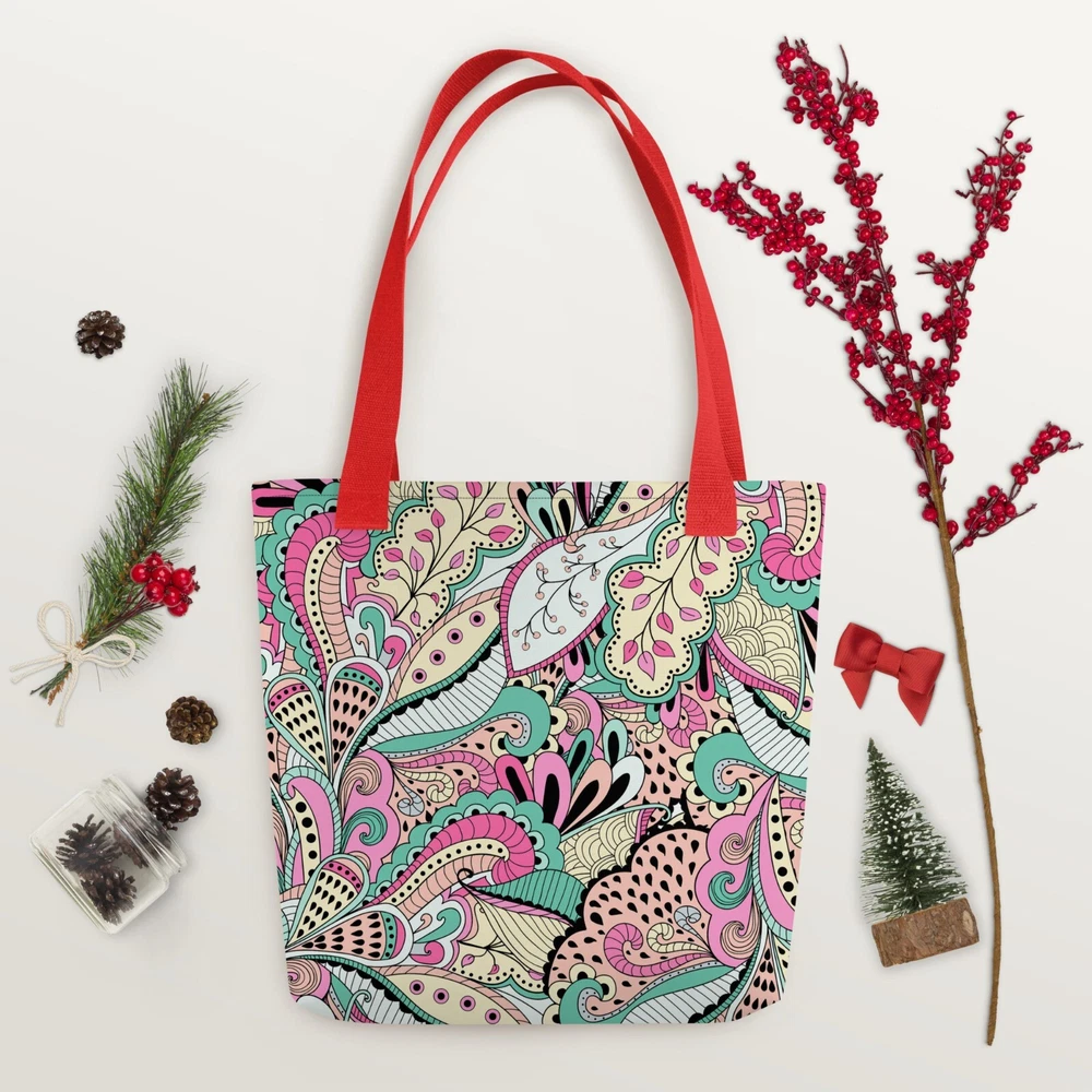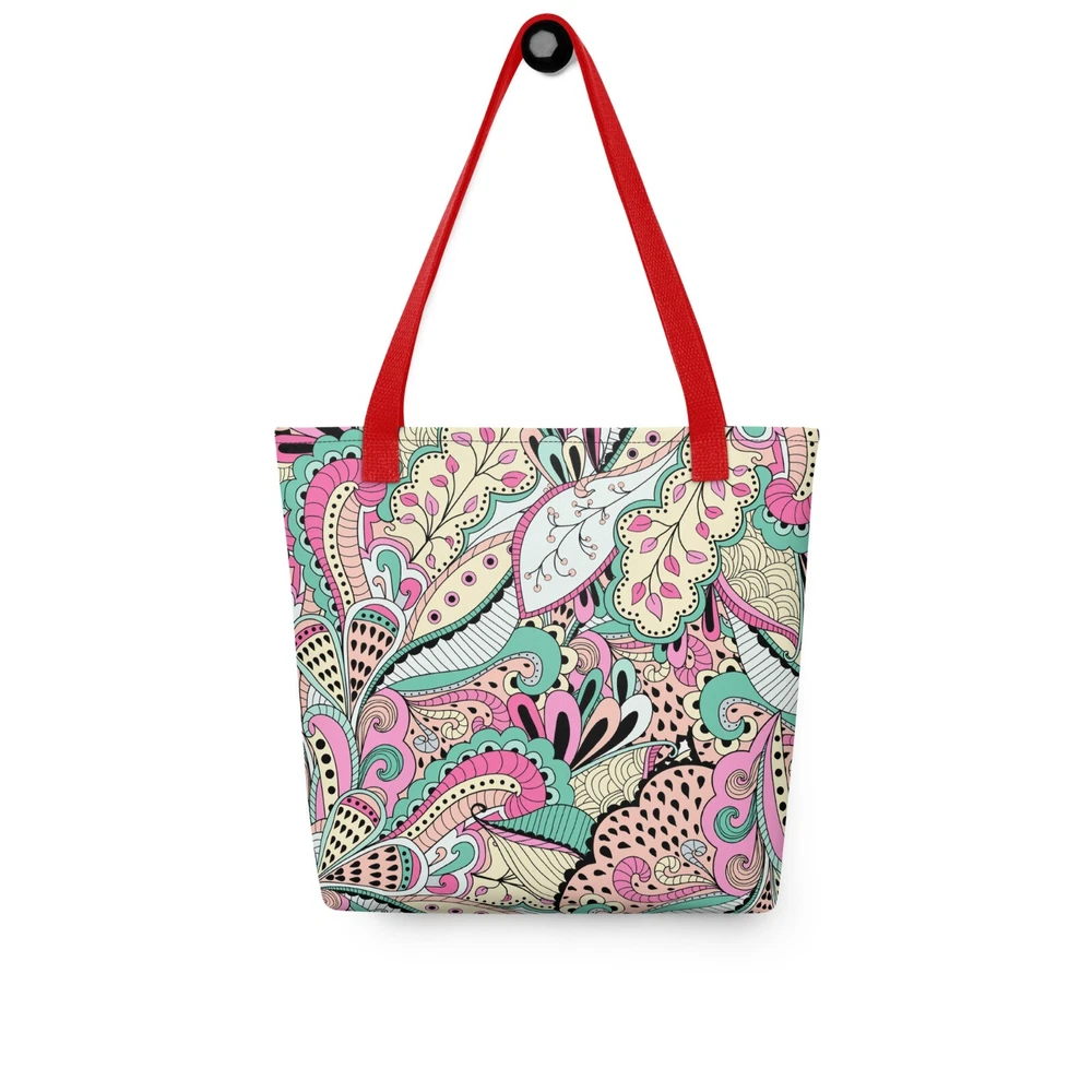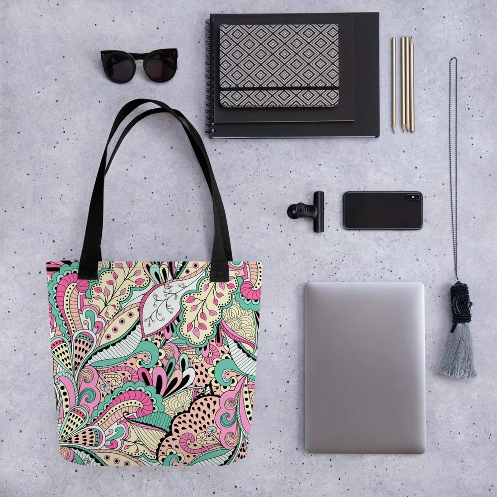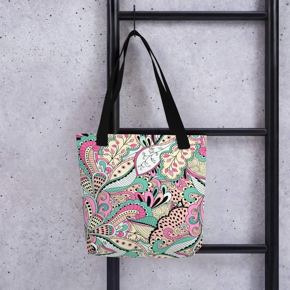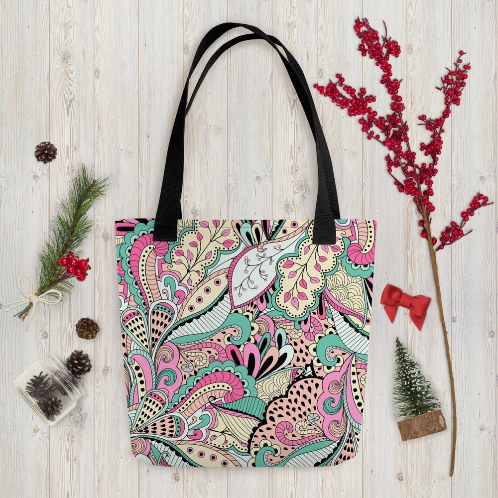 This tote bag is a stylish and practical must-have! The vibrant floral print adds a fun pop to any outfit, and the spacious interior easily fits all my daily essentials. The sturdy cotton handles are comfortable, even when carrying heavy loads. Love that it’s ethically made to order—perfect for eco-conscious shoppers. Highly recommend!