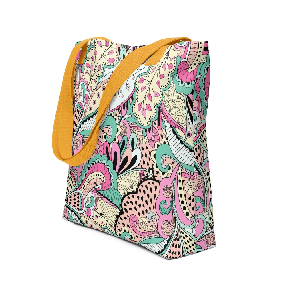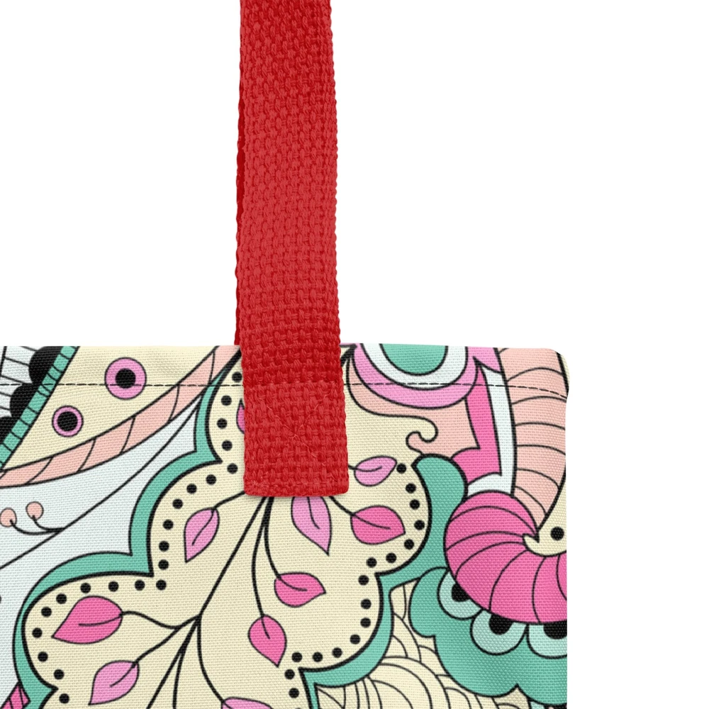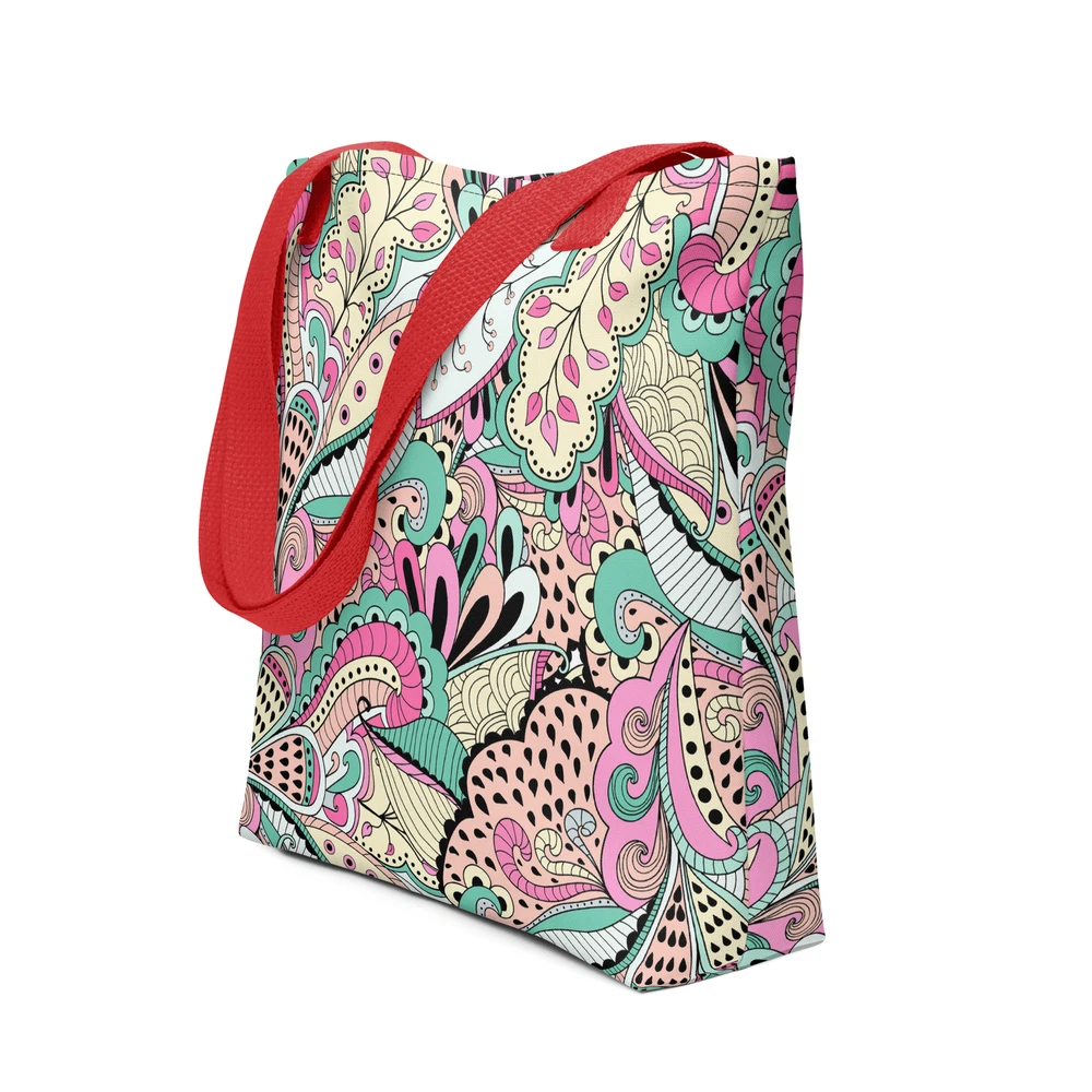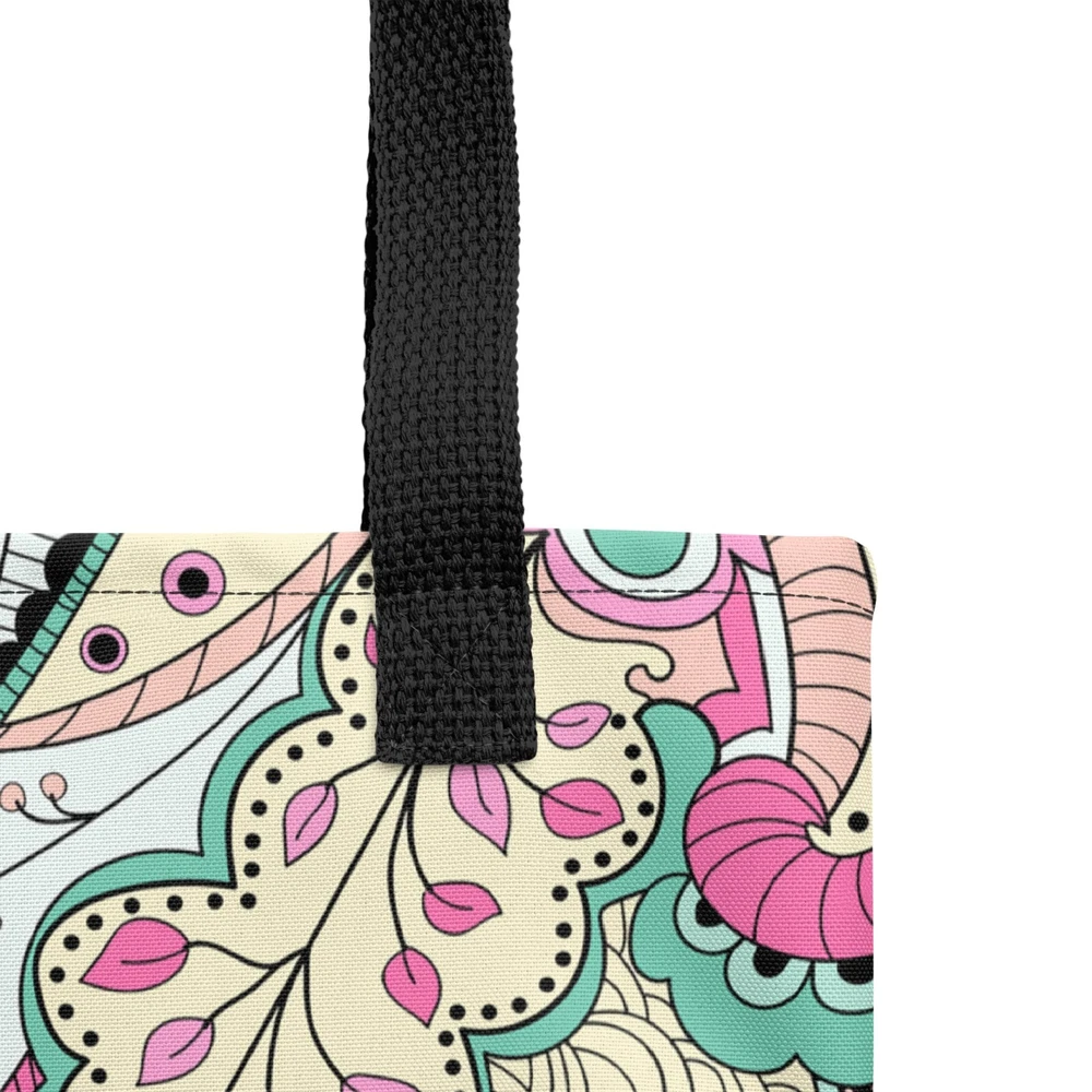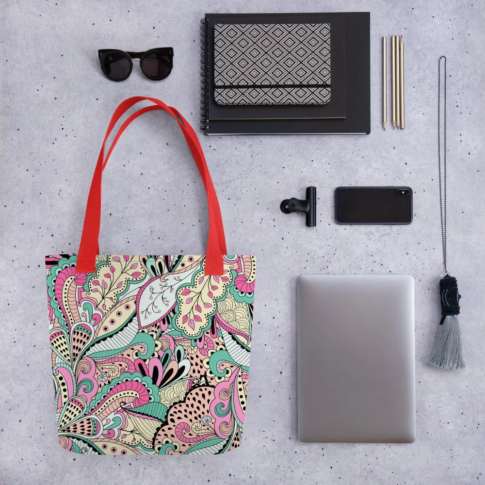 This tote bag is a stylish and practical must-have! The vibrant floral print adds a fun pop to any outfit, and the spacious interior easily fits all my daily essentials. The sturdy cotton handles are comfortable, even when carrying heavy loads. Love that it’s ethically made to order—perfect for eco-conscious shoppers. Highly recommend!