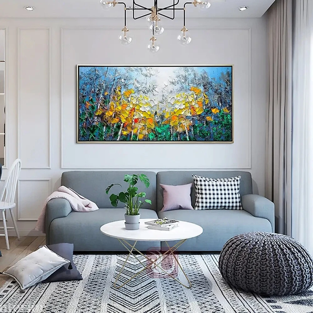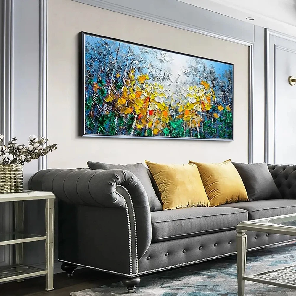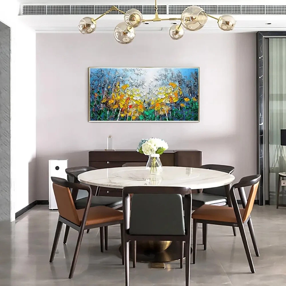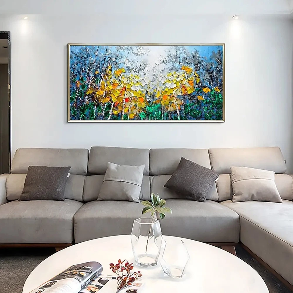 Abstract Forest Landscape Oil Painting Handmade on Canvas Blue Trees Palette