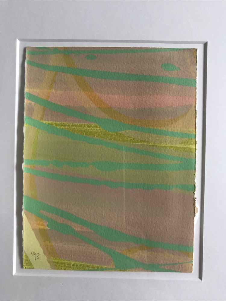 A very nice screenprint float mounted on heavy paper in a fine contemporary wood frame From a collection (as marked for hanging in marker pen verso) Denoted lower left 98 in pencil which I assume is the date Very much in the style of artists like Albert Irvin or charlotte Cornish Vibrant colours Overall with frame measures 34cm by 38cm In excellent condition Shipping framed Apologies for the reflections from the glass!