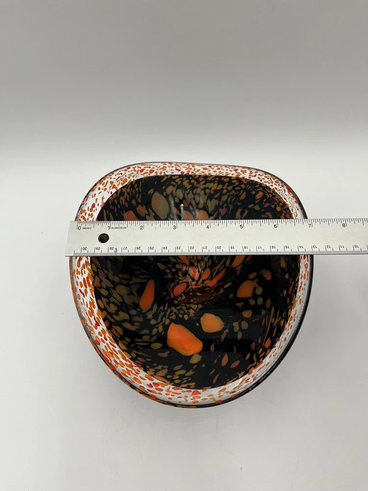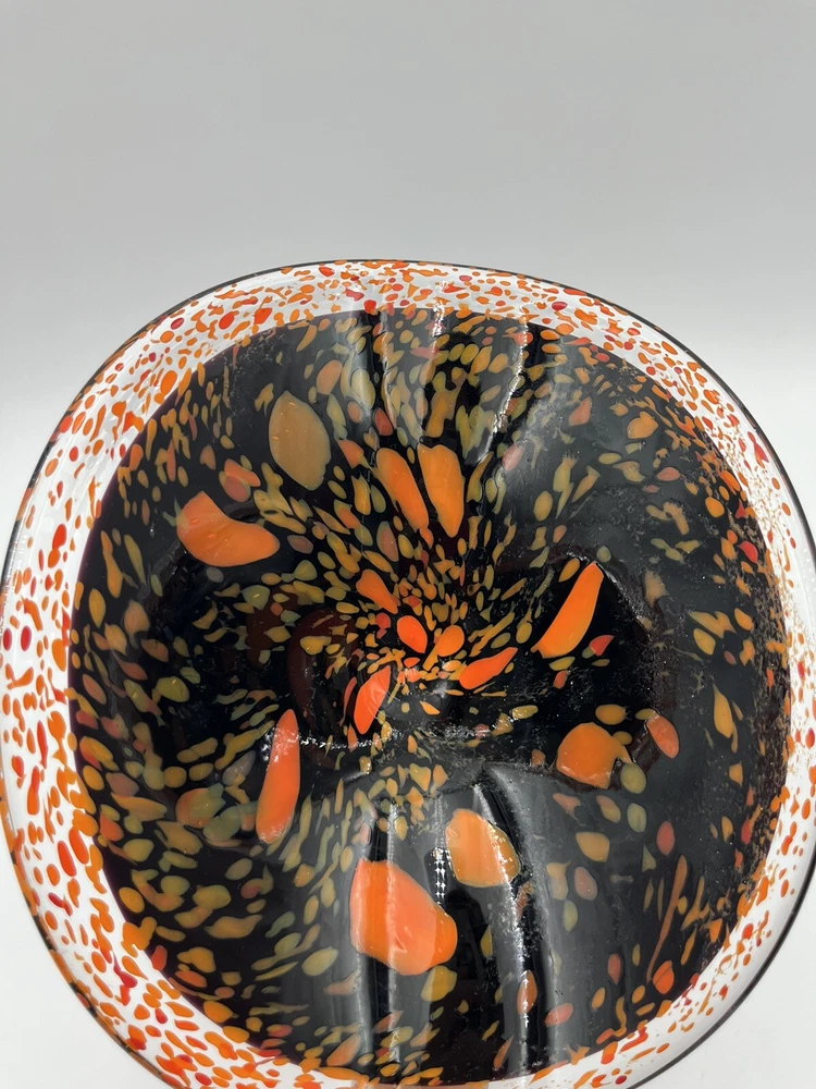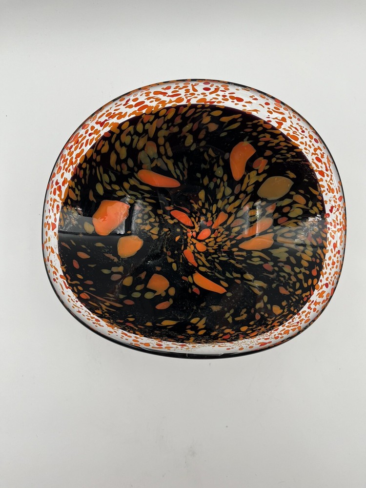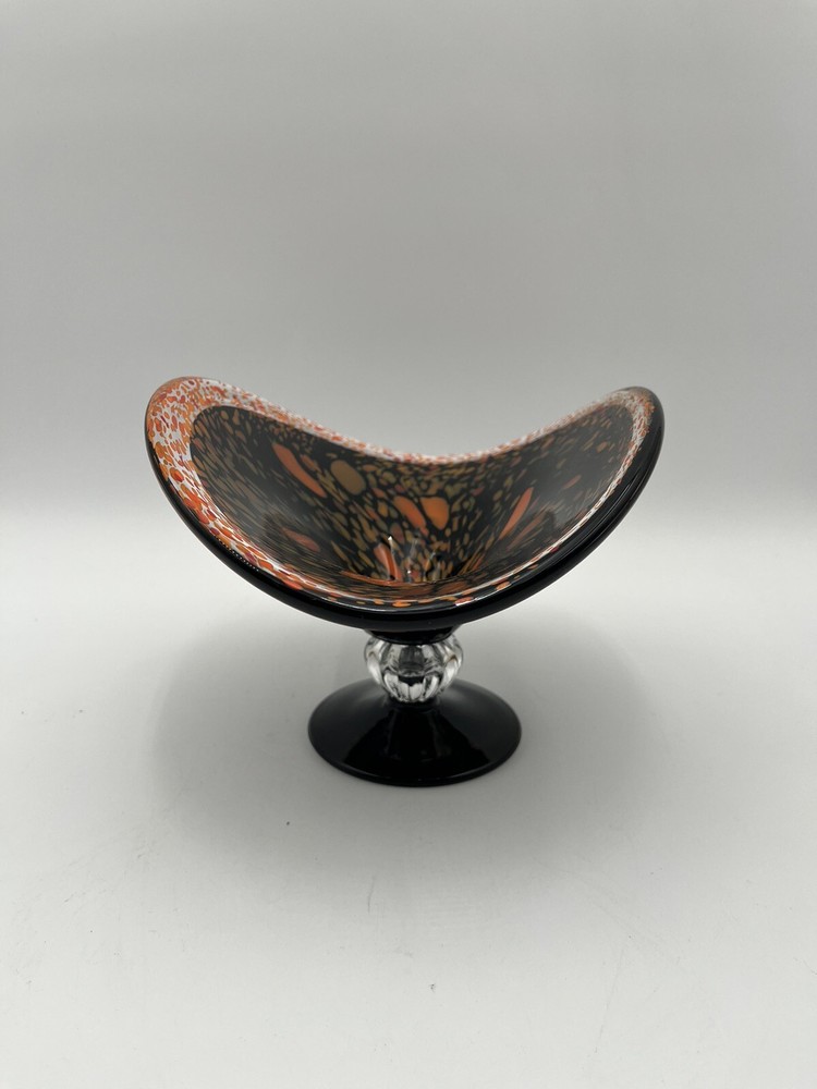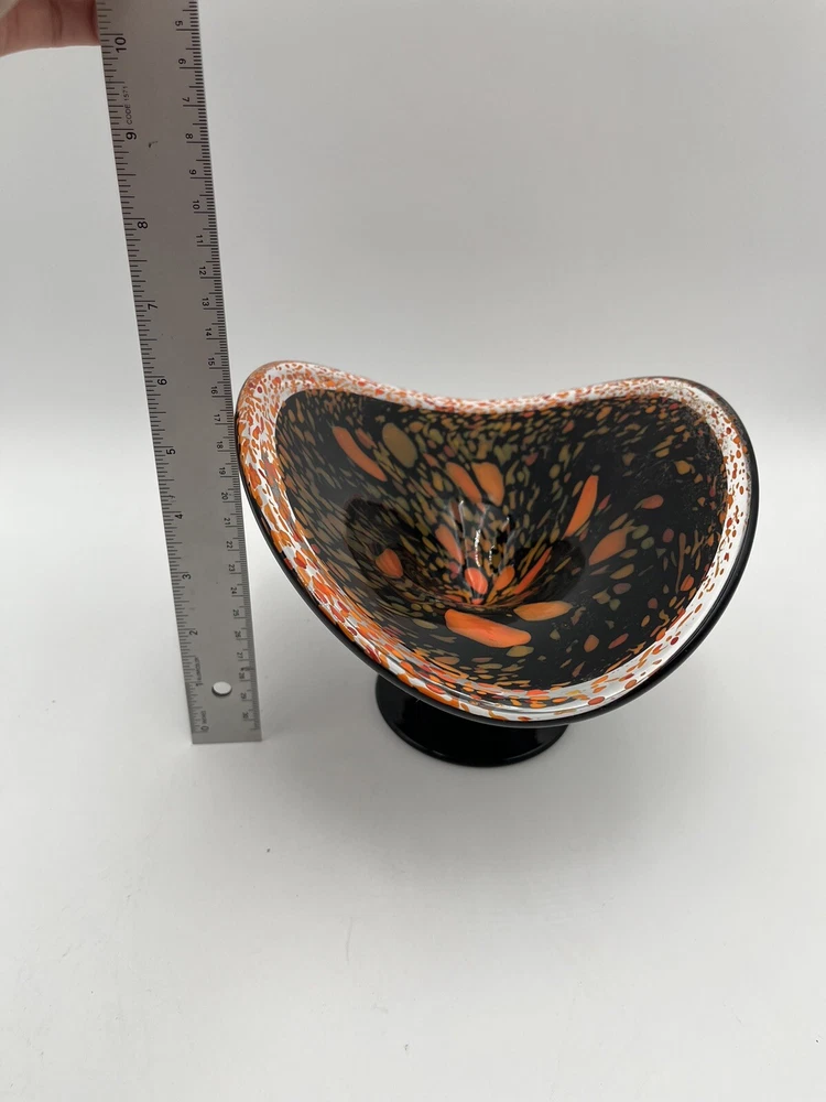 Add a touch of contemporary elegance to your home décor with this stunning Abstract Free Form Blown Art Glass Pedestal Console Bowl. The round shape and glossy finish of this bowl make it a perfect addition to any occasion, be it a party, Halloween, Thanksgiving, or just a casual day at home. The vibrant orange and black colors add a touch of Halloween vibe to your home. Made of high-quality glass material, this bowl is not only beautiful but also durable. No chips or cracks. CONDITION & DESCRIPTION Condition of an item is subjective. We take pictures of all ware, flaws, etc. in order to provide you with the most accurate visual description. Please view all pictures to determine what condition the item is in. We spend a lot of time researching items before listing to provide the most authentic descriptions. In addition to our research, we encourage all buyers to do their own research before purchasing an item. SHIPPING & HANDLING Mailing Address - We will ONLY ship to the address on file with ebay. Before making a purchase, please ensure that your address is correct. We may otherwise cancel the sale. Handling Time - Our handling time is set to FIVE BUSINESS DAYS. Packages are shipped Mon-Sun Calculated Shipping - Our shipping fees are calculated based on weight and dimensions. We ship USPS and UPS depending on cost. All items are shipped from Florida. Combined Invoices - We will combine shipping if purchases can be safely combined. Combined invoices are sent weekly. Damaged in Shipping – We work hard to make to items are carefully and correctly packed for successful shipping. If an item arrives damaged, we ask that you please take pictures of (1) any damage on the box, (2) the damaged item within the box. This way we can quickly fix the issue. Returns – We accept returns within 30 days of purchase. Buyer pays return shipping costs.