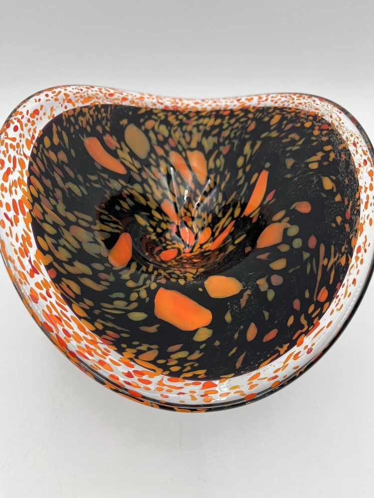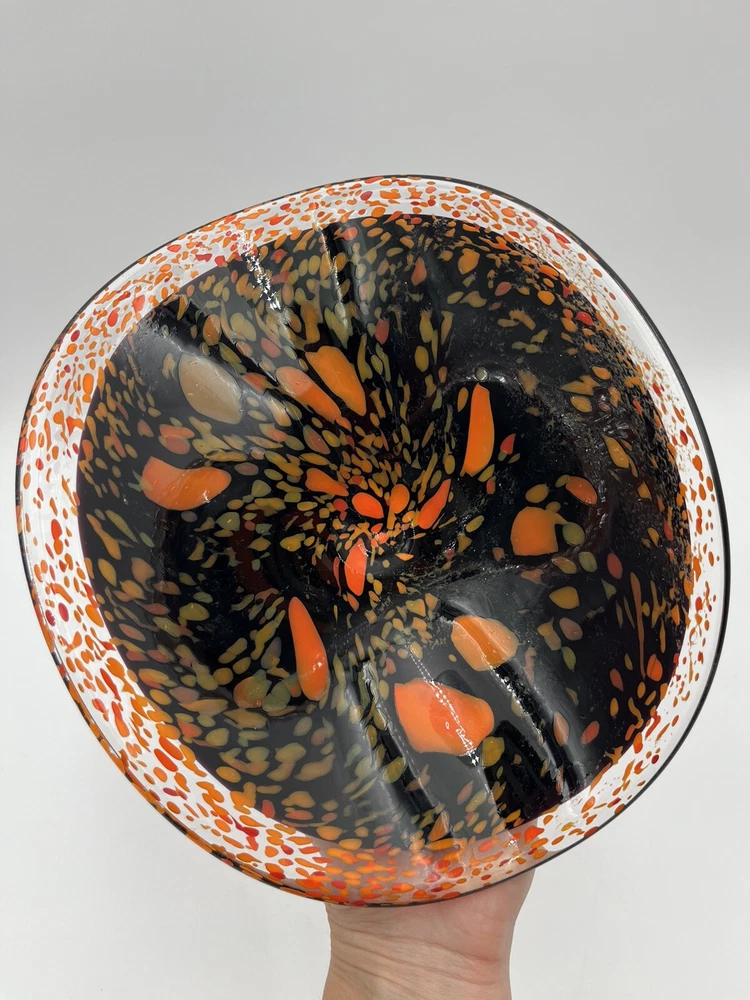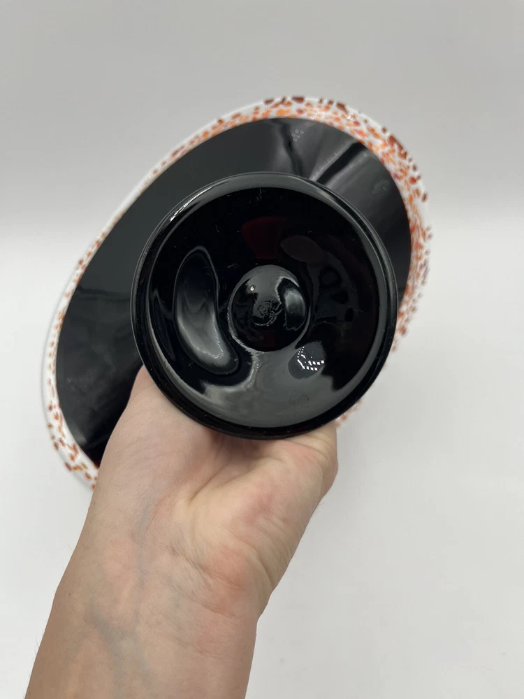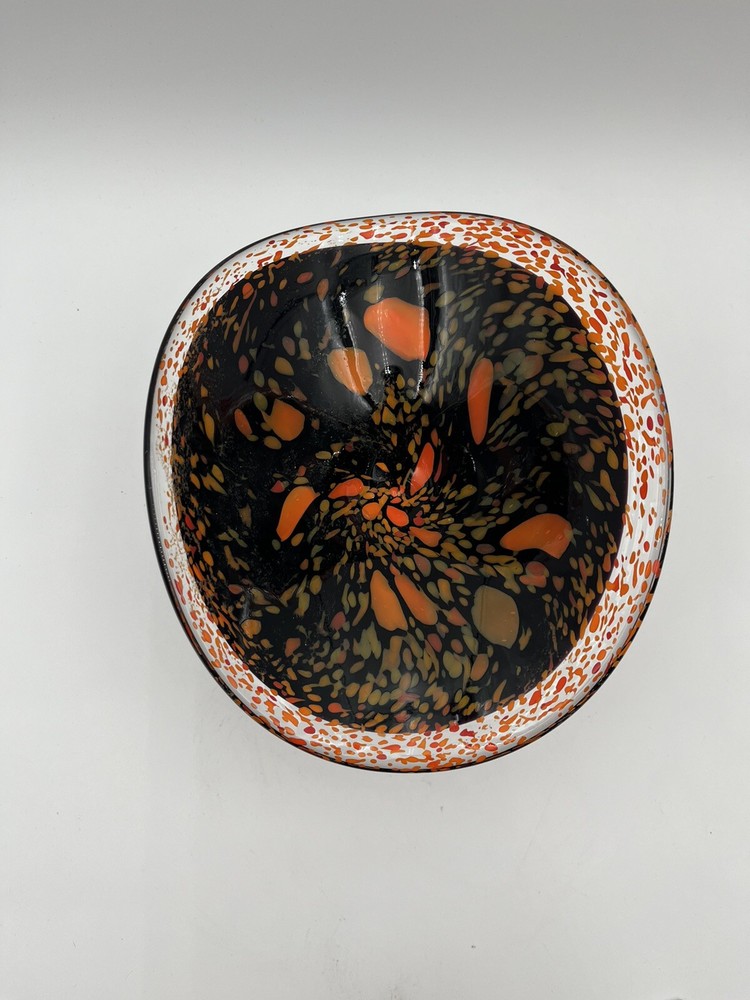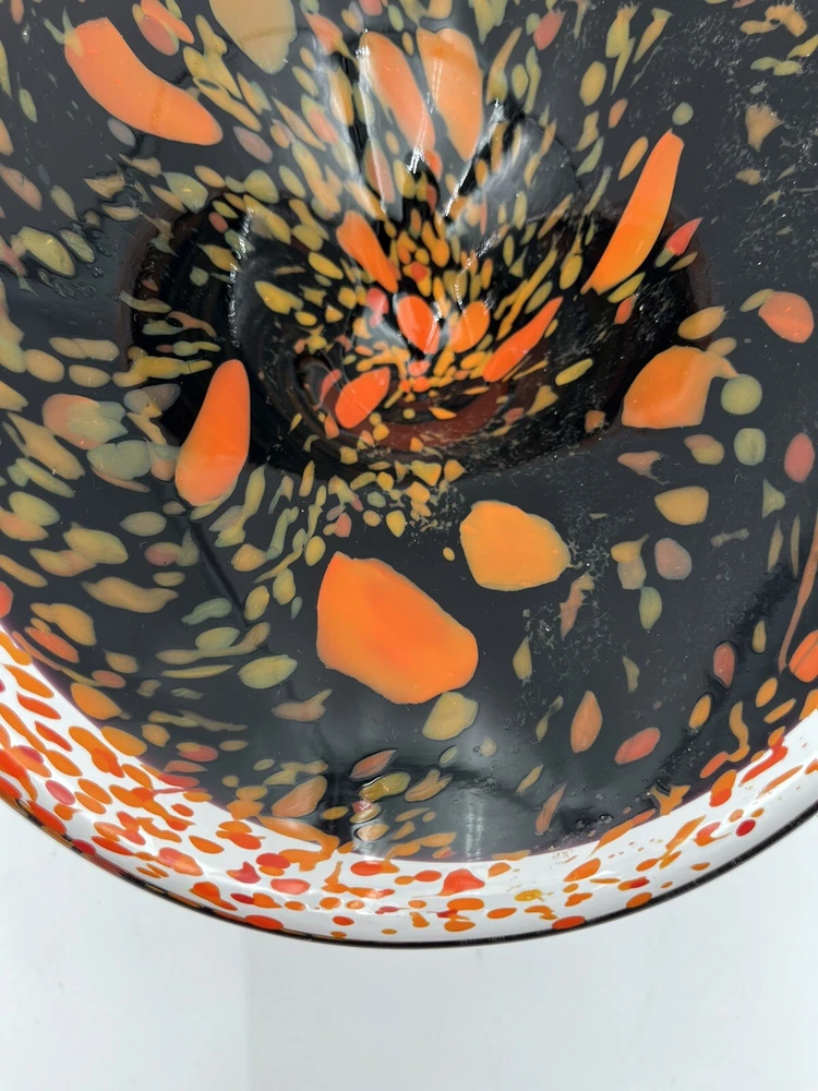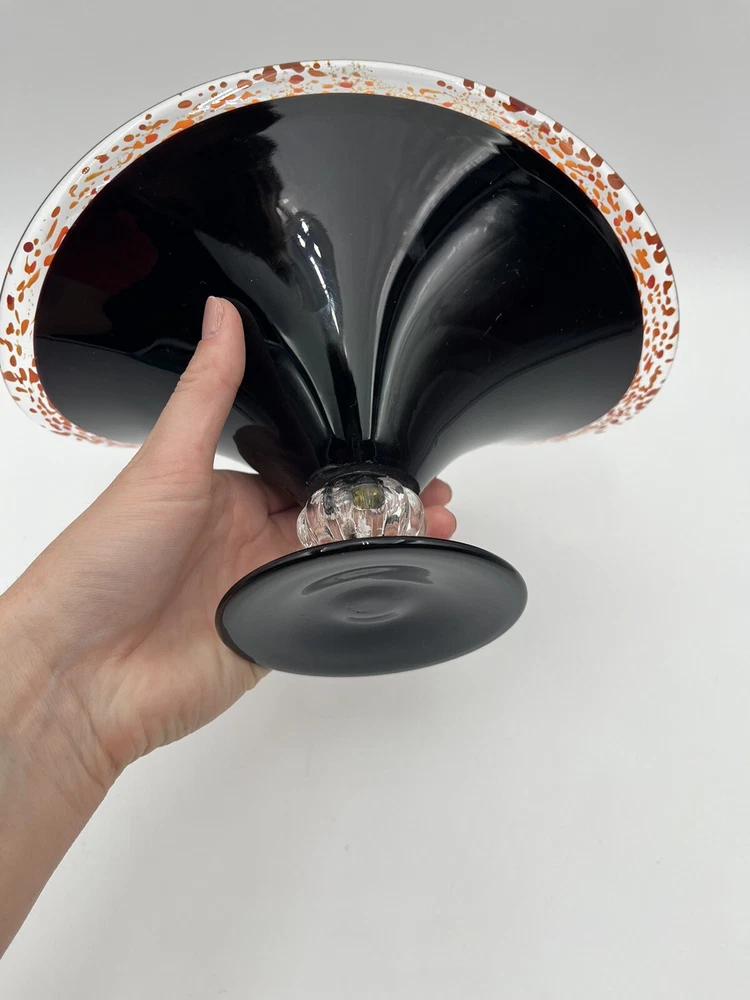 Add a touch of contemporary elegance to your home décor with this stunning Abstract Free Form Blown Art Glass Pedestal Console Bowl. The round shape and glossy finish of this bowl make it a perfect addition to any occasion, be it a party, Halloween, Thanksgiving, or just a casual day at home. The vibrant orange and black colors add a touch of Halloween vibe to your home. Made of high-quality glass material, this bowl is not only beautiful but also durable. No chips or cracks. CONDITION & DESCRIPTION Condition of an item is subjective. We take pictures of all ware, flaws, etc. in order to provide you with the most accurate visual description. Please view all pictures to determine what condition the item is in. We spend a lot of time researching items before listing to provide the most authentic descriptions. In addition to our research, we encourage all buyers to do their own research before purchasing an item. SHIPPING & HANDLING Mailing Address - We will ONLY ship to the address on file with ebay. Before making a purchase, please ensure that your address is correct. We may otherwise cancel the sale. Handling Time - Our handling time is set to FIVE BUSINESS DAYS. Packages are shipped Mon-Sun Calculated Shipping - Our shipping fees are calculated based on weight and dimensions. We ship USPS and UPS depending on cost. All items are shipped from Florida. Combined Invoices - We will combine shipping if purchases can be safely combined. Combined invoices are sent weekly. Damaged in Shipping – We work hard to make to items are carefully and correctly packed for successful shipping. If an item arrives damaged, we ask that you please take pictures of (1) any damage on the box, (2) the damaged item within the box. This way we can quickly fix the issue. Returns – We accept returns within 30 days of purchase. Buyer pays return shipping costs.