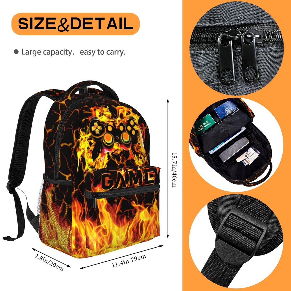 Abstract Gamepad Backpack Video Games Gaming Travel Laptop Backpack Water Resistant Bags Bookbag Travel Hiking Camping Daypack for Adults Teens Boys Girls PRODUCT DESCRIPTION Description Backpack Dinosaur Backpack Cartoon Backpack Feature: A Backpack Suitable For Going Out, Simple Style And Stylish 3d Pattern, Easy To Carry And Can Hold A Lot Of Things. The Stylish Pattern Printed With Modern Heat Transfer Technology Ensures That The Bag Will Fade Very Slowly Over The Next Few Years. AirCushion Strap System, Breathable Strap Design, Comfortable To Carry. Comfortable And Practical, This Backpack Can Hold Not Only Books But Also Everyday Items Like A Study, Mug Or Umbrella. This Is A Versatile Backpack Where You Can Store Some Clothes Or Water While Hiking Or Hiking. Specifications: Dimensions: 11.2''(L) X 15.7''(H) X 7.8''(W), Suitable For Kids, Boys, Girls, Teens, Men, Women. Note: Please Allow Slight Color Difference Due To Different Camera Or Lighting Environment. PRODUCT FEATURES Age Grading: Suitable For Over Five Years SIZE: 15.7x11.2x7.8in, Large Capacity Game Theory Backpack For Boys,boys backpacks for elementary Is A Great Back Pack For Everyday Life MATERIAL: Backpack For Gamers Are Made Of 100% High Quality Polyester, Waterproof Lightweight And , Provide You Comfortable Feeling When You Carry It. Laptop Backpack With Reinforced Metal Zipper, Zip Smoothly, Perfect For Daily Use COMFORT WIDE SHOUDLER STRAPS: Backpacks For Boys 8-12 Can Be Adjusted To A Appropriate Length Of The Straps To Facilitate The Carrying Process To The Fullest Without Tiring Your Shoulders Or Hands. Padded Shoulder Strap Make You More Comfortable DELICATE PATTERN BACKPACK: Gamer Backpack For Boys Large Capacity: 1 Main Compartment Inside, 4 Small Inner Pockets, Suitable For Your Laptop, Ipad, Charger, Books, Clothes, Snacks, Wallet, Pencil Case, Wallet, Textbook, Notebook, Etc. Make .2 X Side Mesh Pockets In Order. Adjustable. Suitable For Your Umbrella, Water Bottle And Juice Box.1 Front Zipper Pocket, Suitable For Your Keys, Mobile Phone, Small Napkins, Pens And Some Small Things, Or Other Small Supplies MULTI-FUNCTION BACKPACK: Our Outdoor Gaming Backpack Are Designed To Be Used In Many Occasions. backpack for school boys Can Be Used As Travel Bag Or Hiking Bag For Camping, Climbing, Cycling Or Many Other Outdoor Activities. Also A Ideal Gift For Teens Men Women π SHIPPING We offer fast and reliable shipping. Your order will be processed within 1-2 business days. International shipping is available to most countries. All items are securely packaged to ensure safe delivery. π RETURNS If you are not satisfied with your purchase, you can return it within 30 days for a full refund. Refunds will be processed to your original method of payment. Items must be returned in their original condition and packaging. π³ PAYMENT We accept payment via PayPal, credit cards, and other payment methods supported by eBay. Please ensure your payment method is correct and updated to avoid any delays in processing your order. β FEEDBACK We value your feedback. If you are happy with your purchase, please leave us a positive review. π CONTACT US If you have any questions or need further assistance, please feel free to contact us through eBay messages.