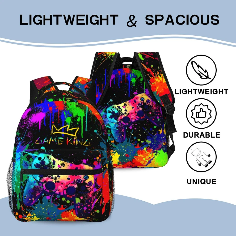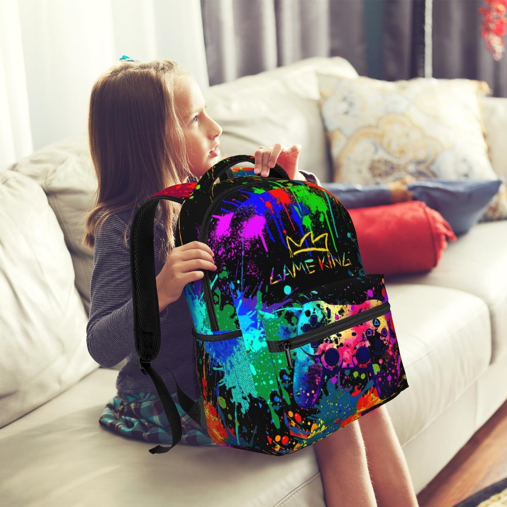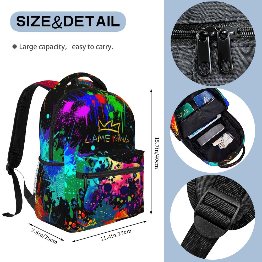Abstract Gamepad Backpack Games Gaming Travel Laptop Backpack Water Resistant Bags Bookbag Travel Hiking Camping Daypack for Adults Teens Boys Girls Description and features Age Grading: Suitable For Over Five Years SIZE: 15.7x11.2x7.8in, Large Capacity Game Theory Backpack For Boys,It Is A Great Back Pack For Everyday Life MATERIAL: Backpack For Gamers Are Made Of 100% High Quality Polyester, Waterproof Lightweight And Provide You Comfortable Feeling When You Carry It. Laptop Backpack With Reinforced Metal Zipper, Zip Smoothly, Perfect For Daily Use COMFORT WIDE SHOUDLER STRAPS: Backpacks For Boys 10-12 Can Be Adjusted To A Appropriate Length Of The Straps To Facilitate The Carrying Process To The Fullest Without Tiring Your Shoulders Or Hands. Padded Shoulder Strap Make You More Comfortable DELICATE PATTERN BACKPACK: Gamer Backpack For Boys Large Capacity: 1 Main Compartment Inside, 4 Small Inner Pockets, Suitable For Your Laptop, Ipad, Charger, Books, Clothes, Snacks, Wallet, Pencil Case, Wallet, Textbook, Notebook, Etc. Make .2 X Side Mesh Pockets In Order. Adjustable. Suitable For Your Umbrella, Water Bottle And Juice Box.1 Front Zipper Pocket, Suitable For Your Keys, Mobile Phone, Small Napkins, Pens And Some Small Things, Or Other Small Supplies MULTI-FUNCTION BACKPACK: Our Outdoor Gaming Backpack Are Designed To Be Used In Many Occasions. Can Be Used As Travel Bag Or Hiking Bag For Camping, Climbing, Cycling Or Many Other Outdoor Activities. Also A Ideal Gift For Teens Men Women Backpack Dinosaur Backpack Cartoon Backpack Feature: A Backpack Suitable For Going Out, Simple Style And Stylish 3d Pattern, Easy To Carry And Can Hold A Lot Of Things. The Stylish Pattern Printed With Modern Heat Transfer Technology Ensures That The Bag Will Fade Very Slowly Over The Next Few Years. AirCushion Strap System, Breathable Strap Design, Comfortable To Carry. Comfortable And Practical, This Backpack Can Hold Not Only Books But Also Everyday Items Like A Study, Mug Or Umbrella. This Is A Versatile Backpack Where You Can Store Some Clothes Or Water While Hiking Or Hiking. Specifications: Dimensions: 11.2''(L) X 15.7''(H) X 7.8''(W), Suitable For Kids, Boys, Girls, Teens, Men, Women. Note: Please Allow Slight Color Difference Due To Different Camera Or Lighting Environment. Return Policy ⦿ All our products come with a 30-Day Return Policy. If you would like to return your item and you are within 30 days of the purchase, and it is still in its original condition, you can return the item by contacting us through eBay messaging. ⦿ If you are not 100% satisfied, please let us know the Detailed Problem,We will give you a 100% satisfactory solution ⦿ If you received an incorrect, damaged, defective, or item not as described, contact us for a partial/full refund or replacement on our cost. ⦿ Free Shipping and Free Return 30-Days Money Back Guarantee. ☎ For all returned products, buyers MUST contact us for the returning address. Shipping ⦿ We do not ship to a different address. we will ship to the address you provide on the ebay only. Please check your address before purchase. ⦿ It should take 2-4 business days for the product to reach your destination. ⦿ If the product doesn't reach your destination within the time limit, please give it an additional 1-2 business days in case of postal delays and/or possible technical issues. ⦿ We use a selection of shipping services such as UPS, FedEx, USPS etc. ⦿ We ship only to the 48 contiguous states of America. We do not ship to Hawaii, Alaska, US Protectorates, APO/FPO addresses. Local pickups are not offered. ☎ If it takes any longer than that, please do not hesitate to contact us to resolve the issues. Contact us ☎ Please contact us via eBay message. And your message will be replied within 1 business days. For any queries, please feel free to contact us, we will get back to you as quickly as possible. Customer 100% satisfaction is our first priority and goal. We are always working hard for maintain high standards of excellence and resolve your problem in best way. So your POSITIVE FEEDBACK is very important. If you have any problem of the item, please feel free to let us know before leaving your feedback. We will try our best to solve your problem. About us We are here to give you quality products, competitive pricing and amazing service in order to make sure you get the best deal online, Thank you for your business and the opportunity to serve you.