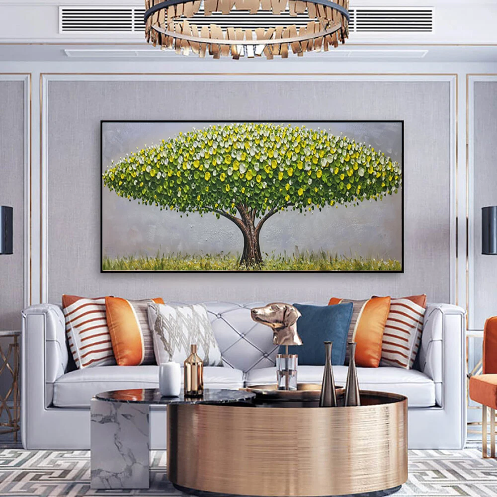 Abstract Green Tree Hand Painted Oil Painting Knife Paintings On Canvas Wall Art